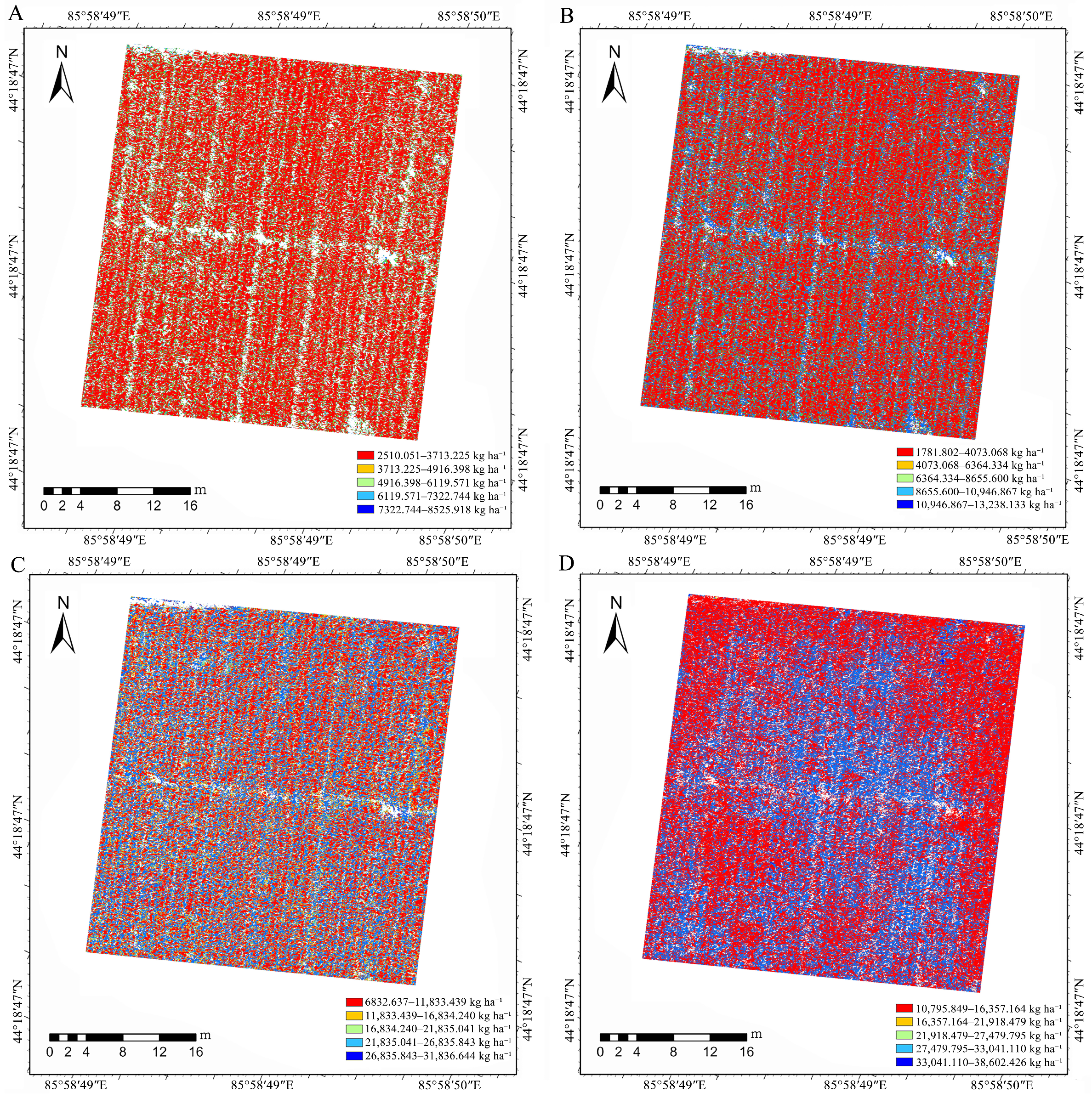 | Maximum (kg ha−1) | 7490.34 | 11,639.41 | 28,015.26 | 33,972.48 | 33,972.48 | |