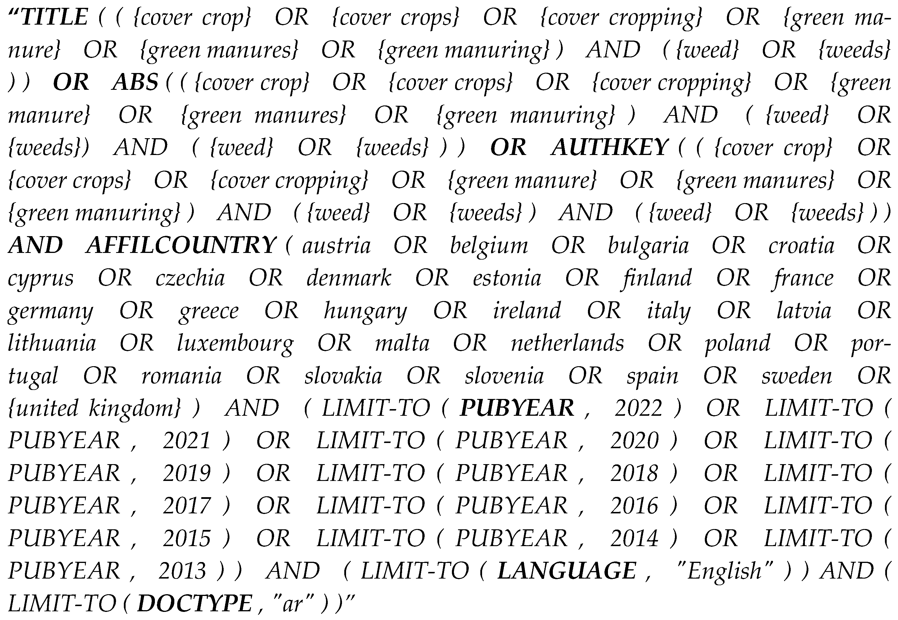 Gagliardi L, Tramacere LG, Antichi D, Frasconi C, Sbrana M, Sileoni G, Monacci E, Pagano L, Darra N, Kriezi O, et al. Alternative Tactics to Herbicides in Integrated Weed Management: A Europe-Centered Systematic Literature Review. Agronomy. 2026; 16(2):220. https://doi.org/10.3390/agronomy16020220