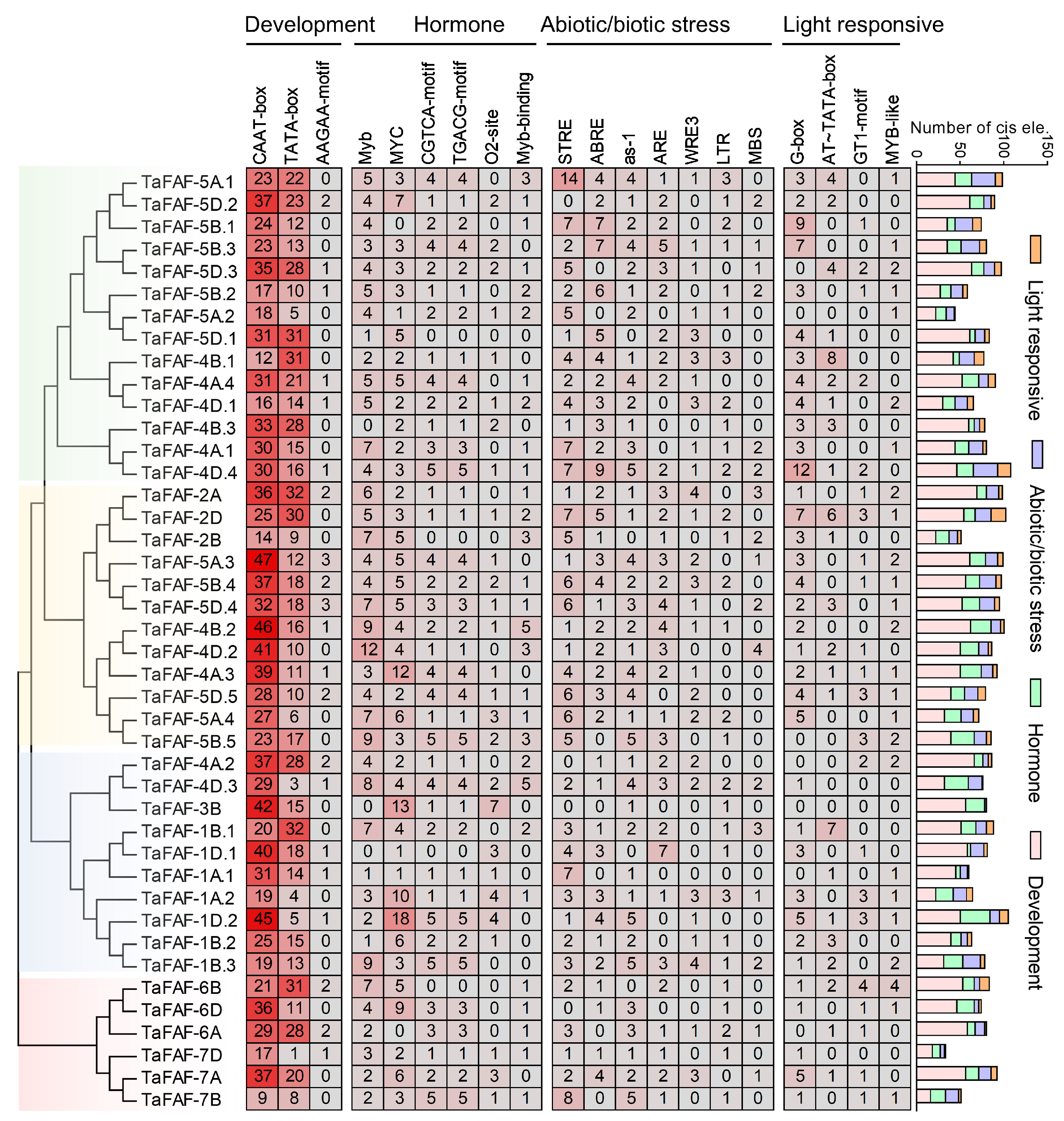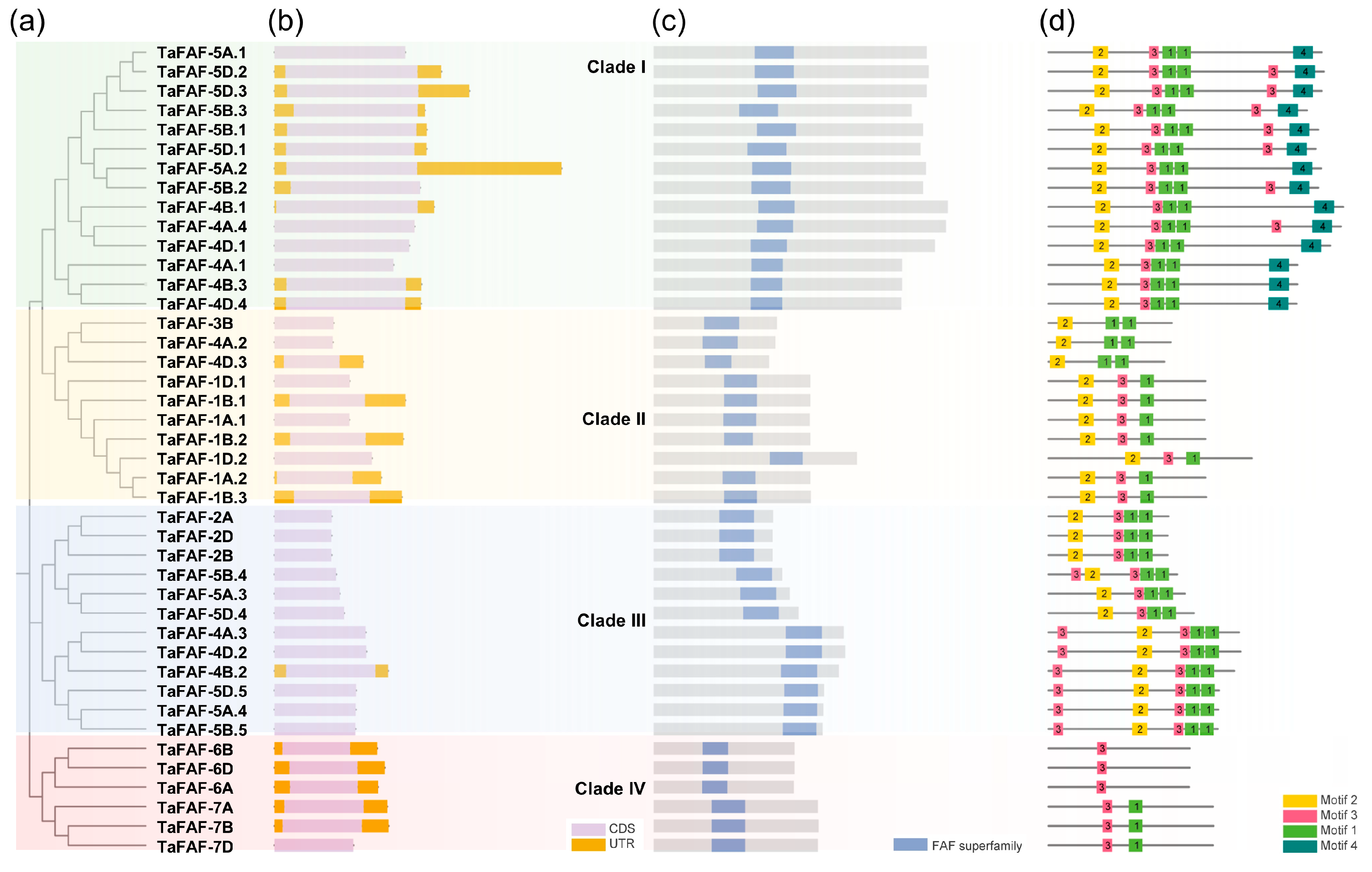 3.2. Phylogenetics and Structure of TaFAF Genes