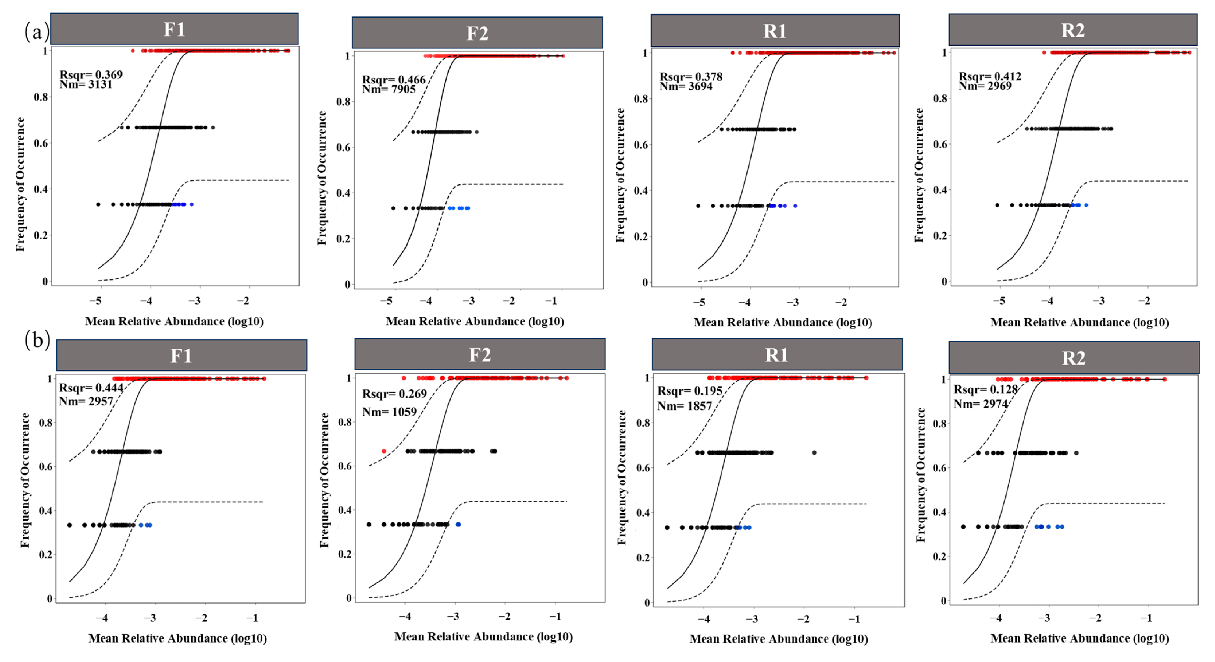3.4. Neutral Community Assembly and Functional Network Differentiation of Methane-Cycling Microbes