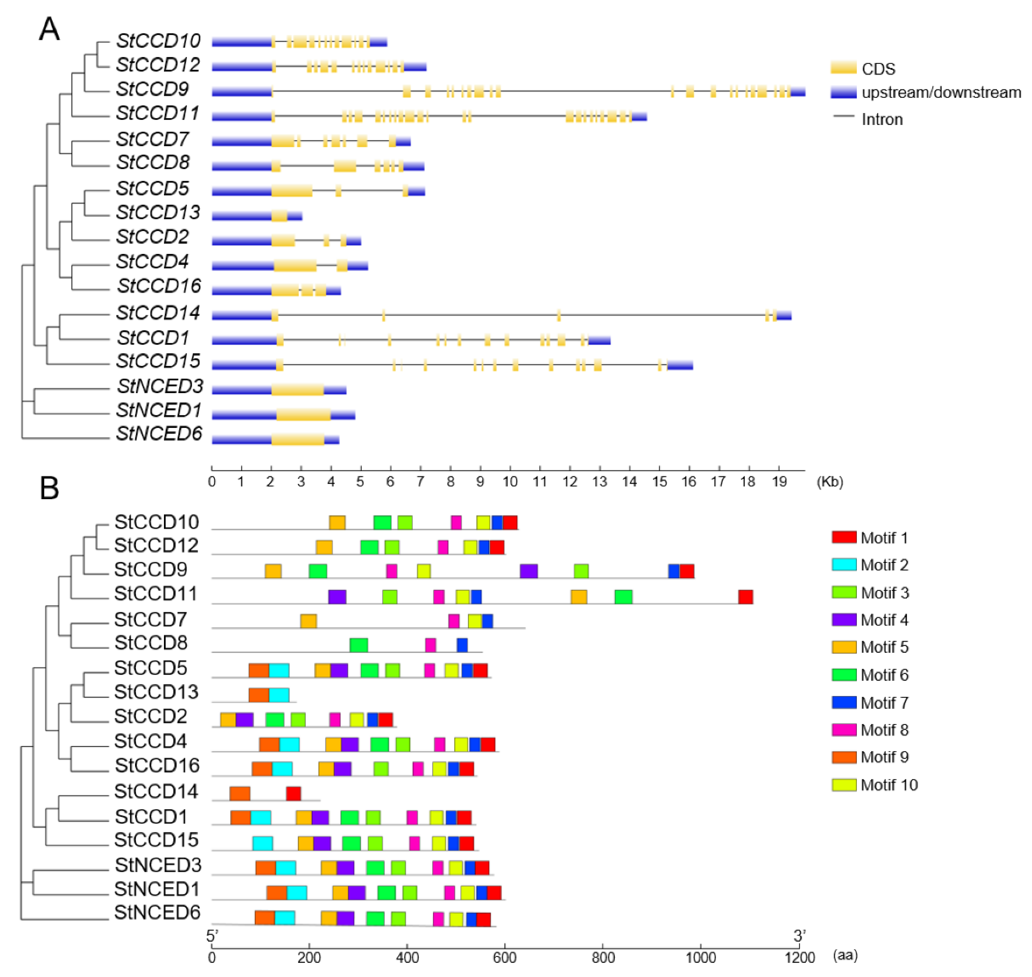 Shen H, Zhang Q, Tang N, Li P, Zhang K, Wang Z, Fang X, Wu C, Wang F, Huang X, et al. Genome-Wide Identification, Characterization and Expression Profiles of the CCD Gene Family in Potato. Agronomy. 2026; 16(2):250. https://doi.org/10.3390/agronomy16020250