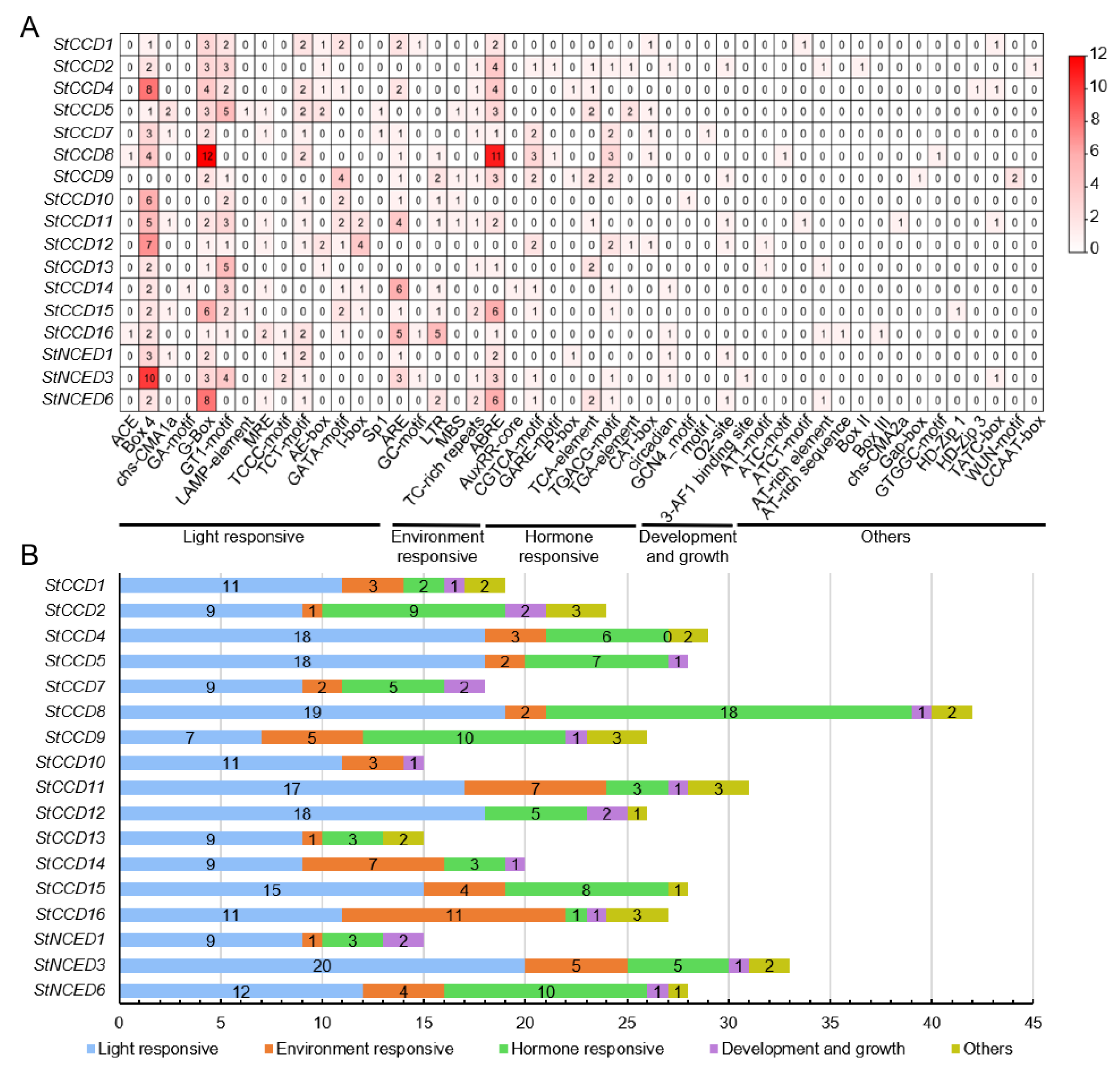 3.4. Analysis of Cis-Elements in the Promoter Regions of CCD Family Genes in Potato