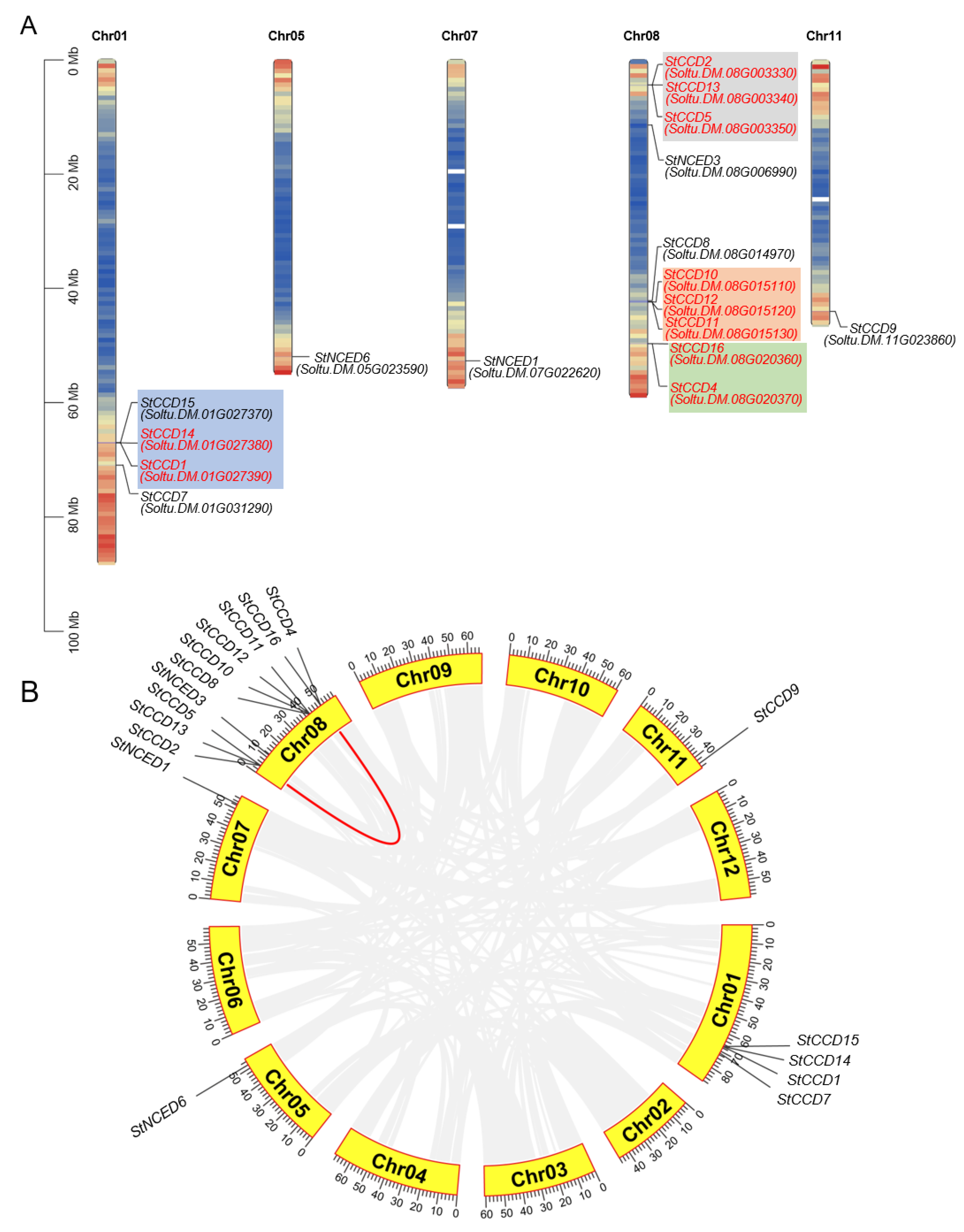 | StCCD2 | Soltu.DM.08G003330 | 6.11 | 42.75 | Chr08: 4438908-4441401 | reverse | 2493 | 1143 | −0.016 | cytoplasm |