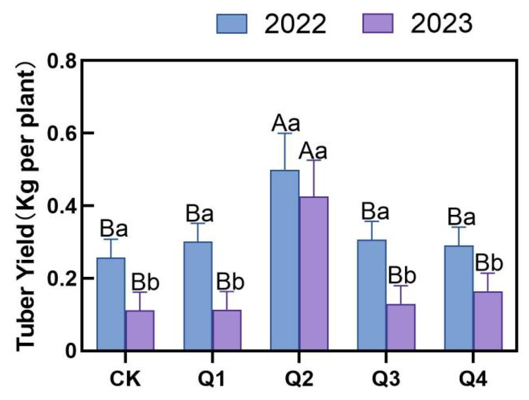 | Tuber Rhizosphere soil | Year × treatment | 4 | 23.846 | p < 0.01 |