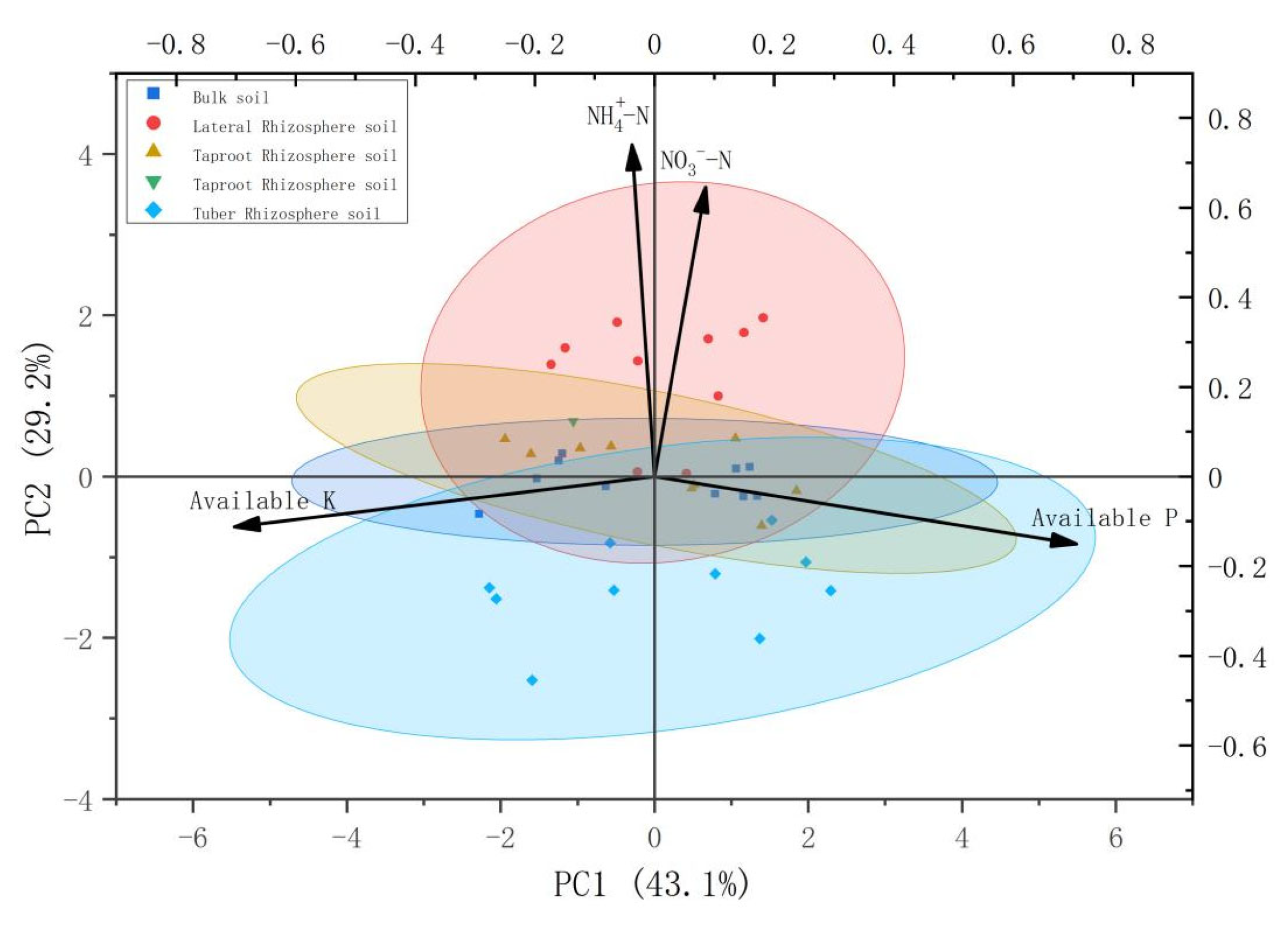 - Liu, S.; He, F.; Kuzyakov, Y.; Xiao, H.; Hoang, D.T.T.; Pu, S.; Razavi, B.S. Nutrients in the rhizosphere: A meta-analysis of content, availability, and influencing factors. Sci. Total Environ. 2022, 826, 153908. [Google Scholar] [CrossRef]