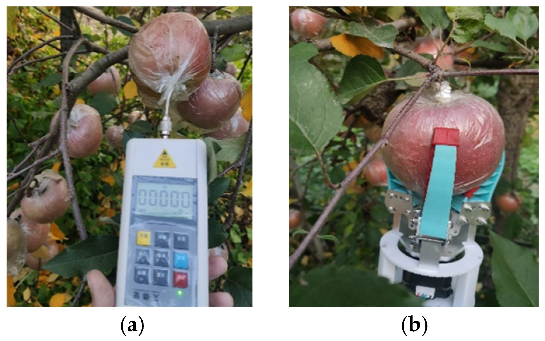 - Hua, W.; Zhang, W.; Zhang, Z.; Liu, X.; Huang, M.; Igathinathane, C.; Vougioukas, S.; Saha, C.K.; Mustafa, N.S.; Salama, D.S.; et al. Vacuum Suction End-Effector Development for Robotic Harvesters of Fresh Market Apples. Biosyst. Eng. 2025, 249, 28–40. [Google Scholar] [CrossRef]
