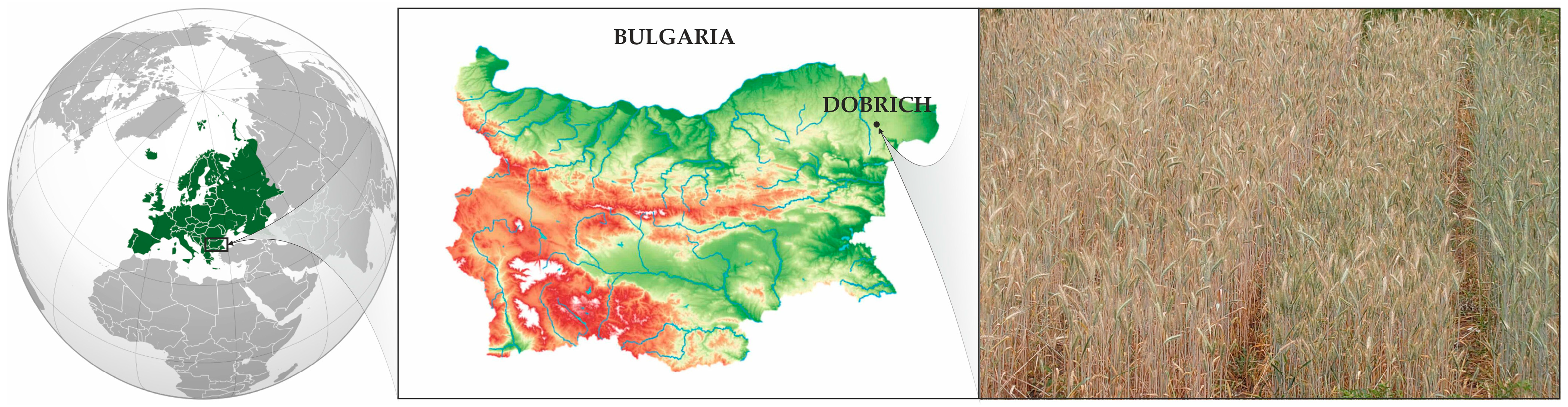 - Kolorit—a Bulgarian winter hexaploid triticale variety that can also be cultivated under spring conditions. Kolorit is characterized by high yield stability under favorable environmental conditions, rapid spring development, and relatively early emergence. The variety produces large, well-filled spikes with comparatively large grains.