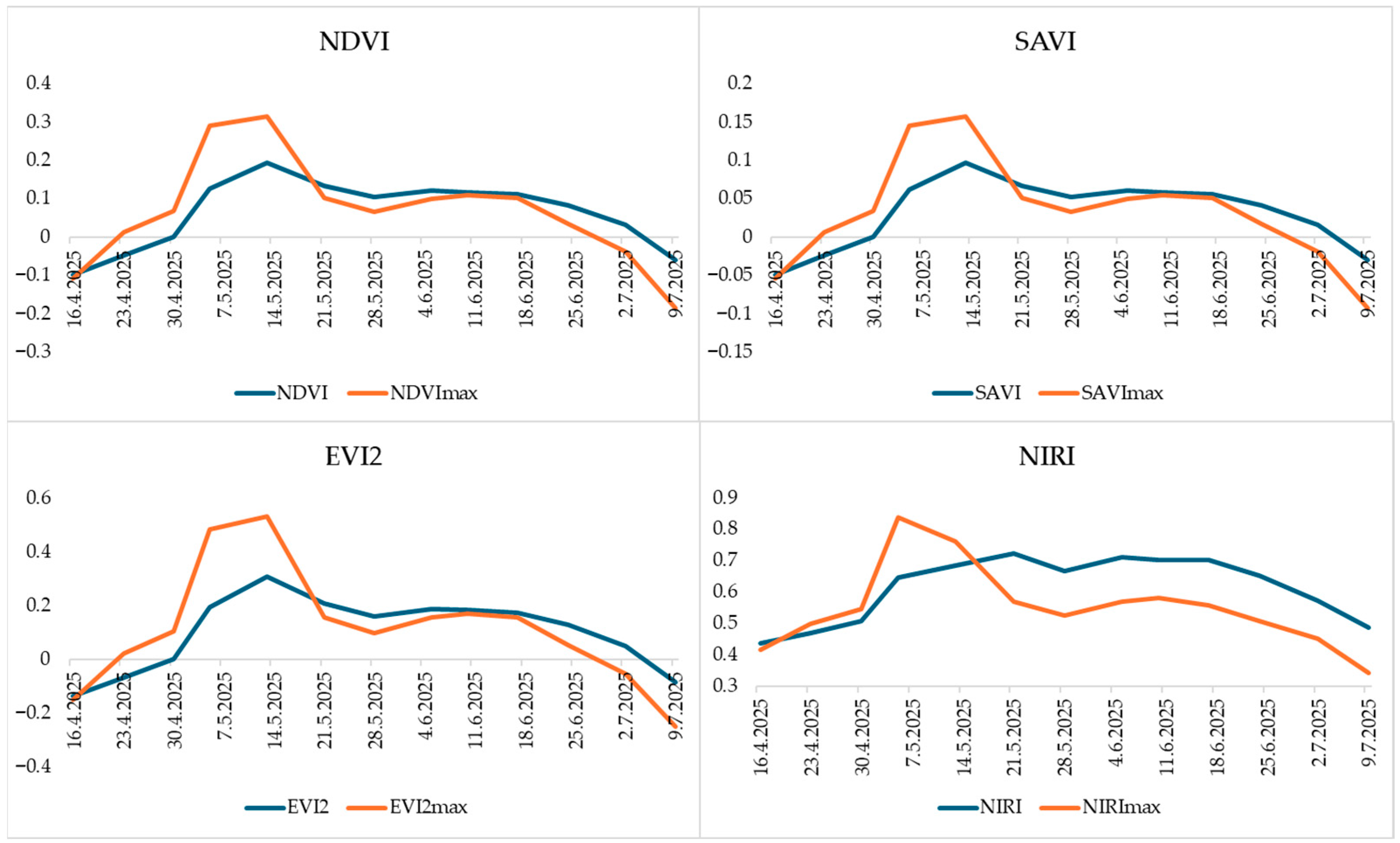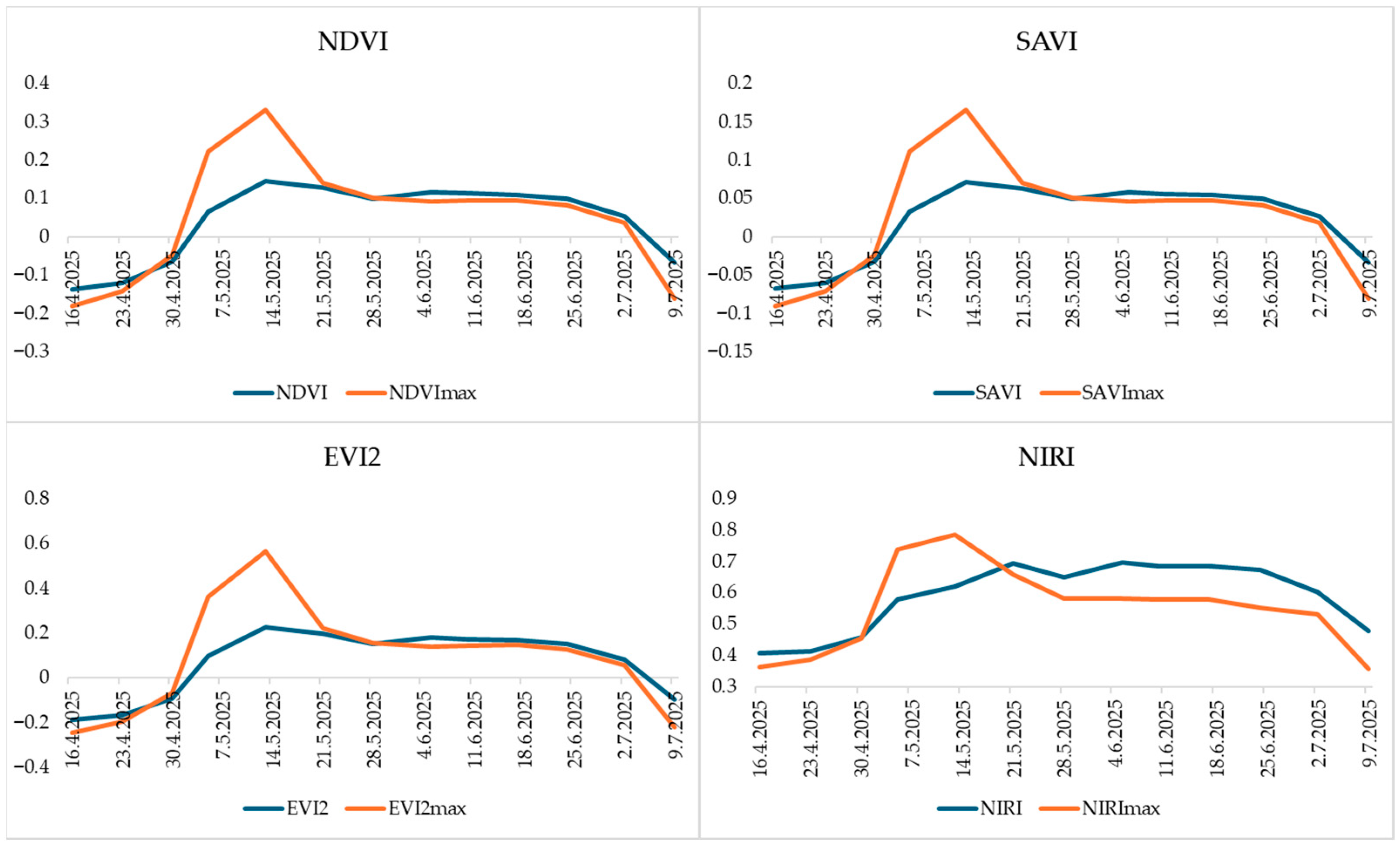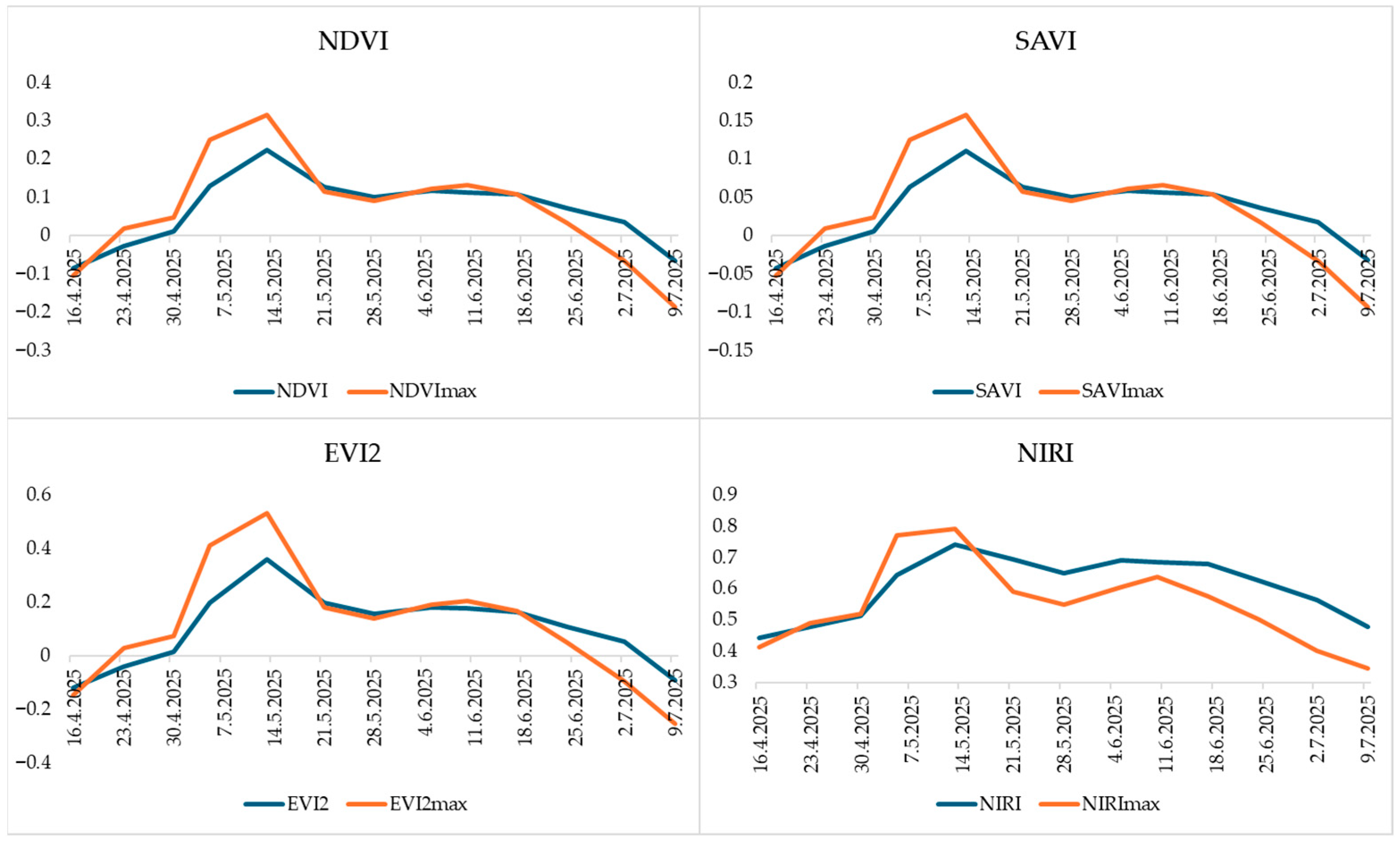 APA StyleAtanasov, A. I., Stoyanov, H. P., Atanasov, A. Z., & Evstatiev, B. I. (2026). Analysis of Vegetation Dynamics and Phenotypic Differentiation in Five Triticale (×Triticosecale Wittm.) Varieties Using UAV-Based Multispectral Indices. Agronomy, 16(3), 303. https://doi.org/10.3390/agronomy16030303
