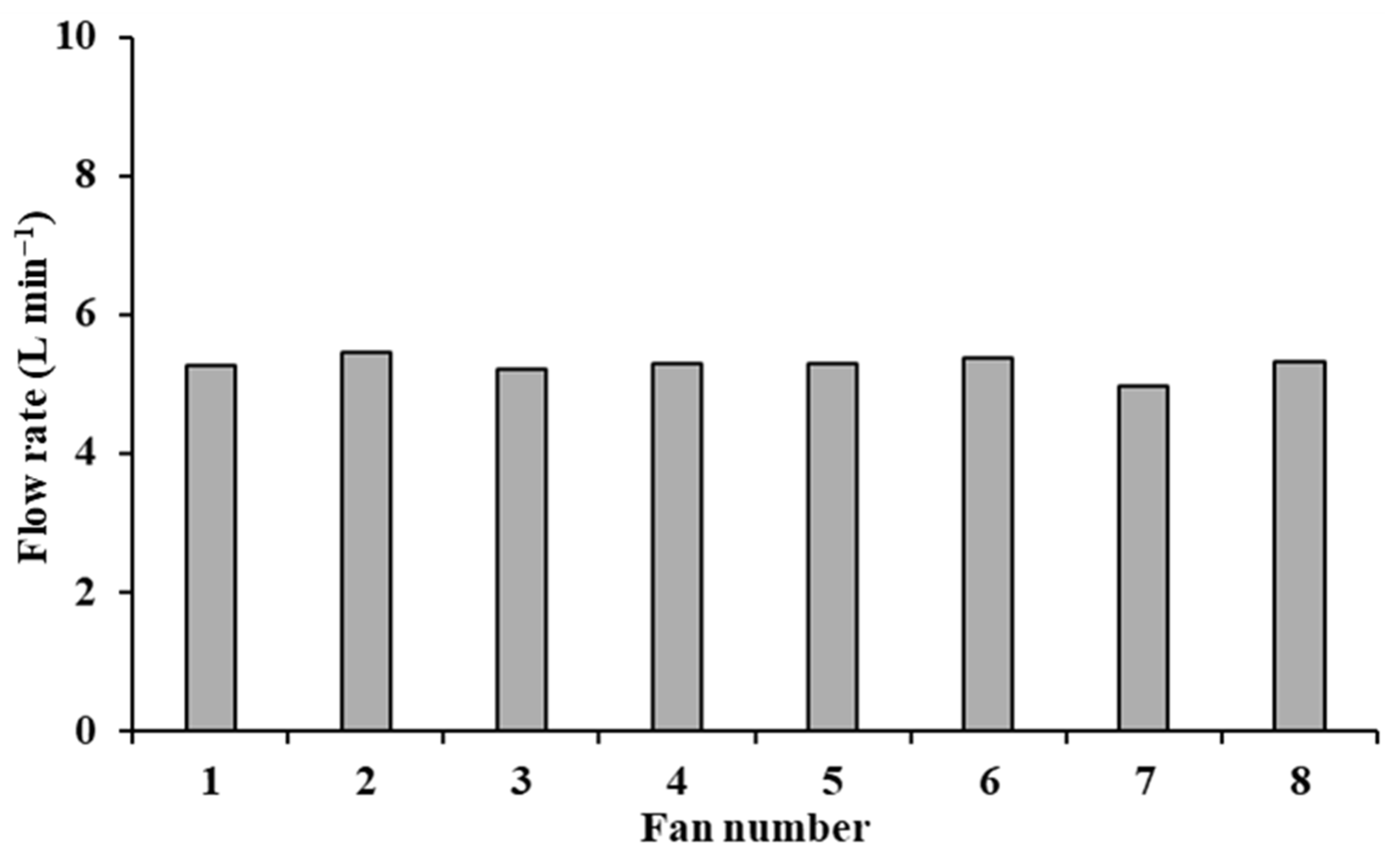 | Fan | Position | Orientation | Nozzle Flow Rate (L min−1) | |