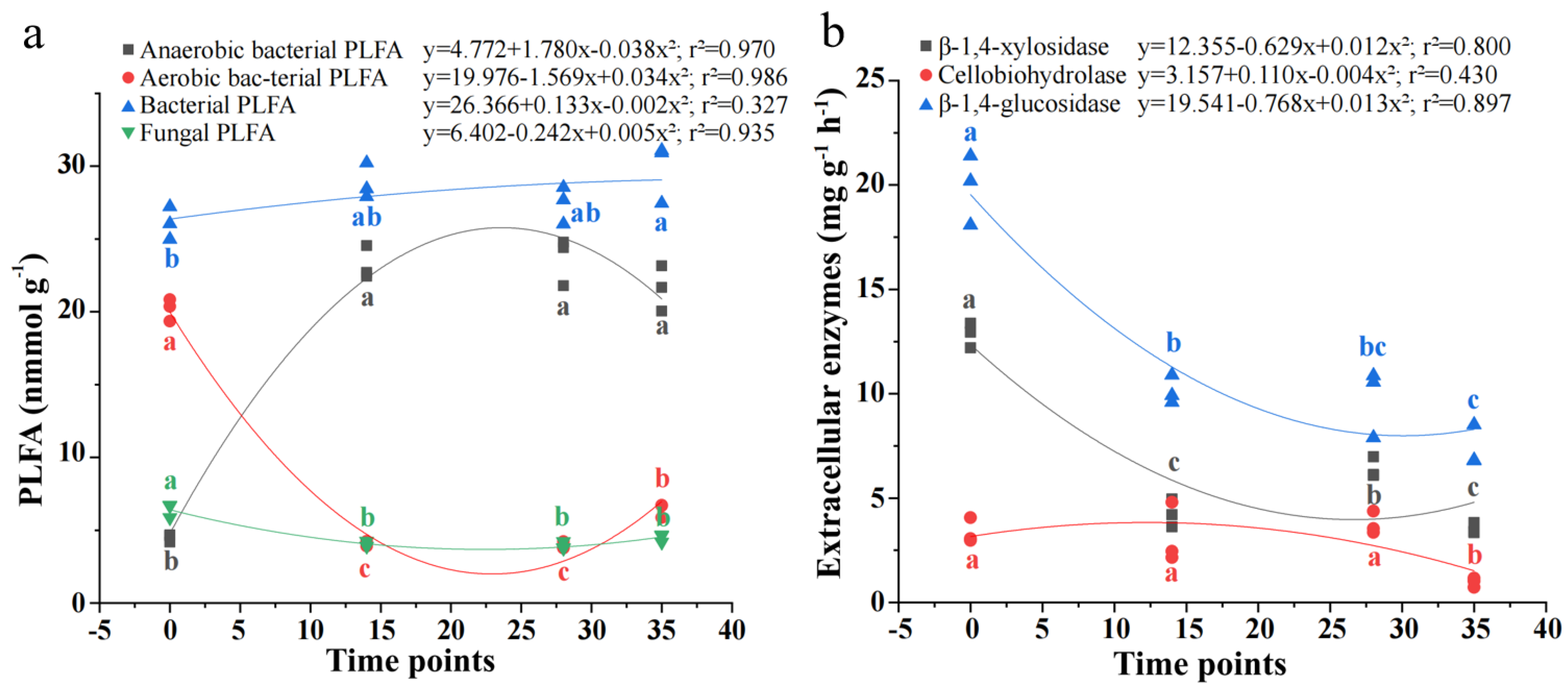 3.4. Dynamics of Living Microorganisms and Activities of Extracellular Enzymes During RSD