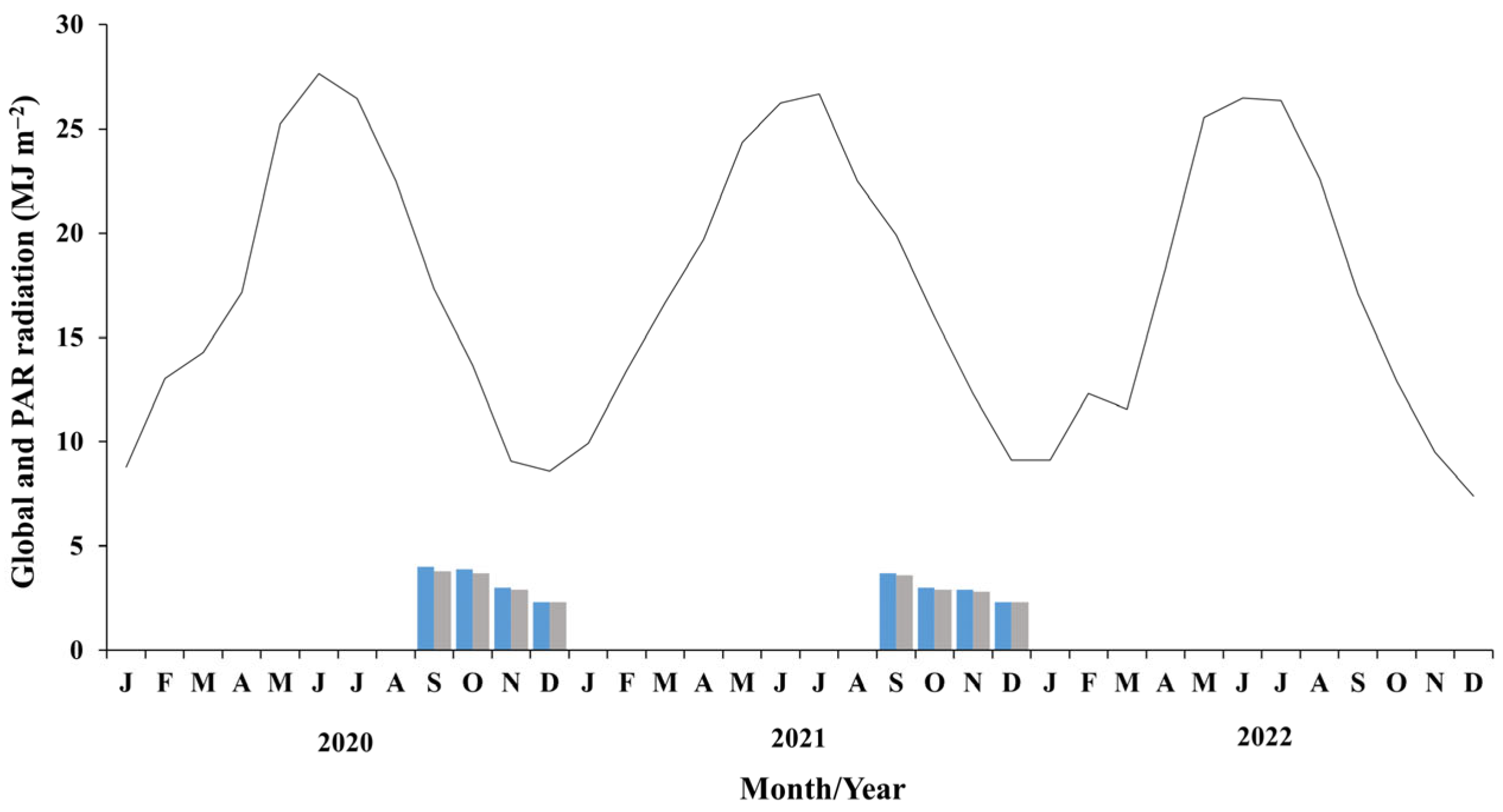 | Cumulated PAR Pi (MJ m−2) | 291.8 | 304.1 |