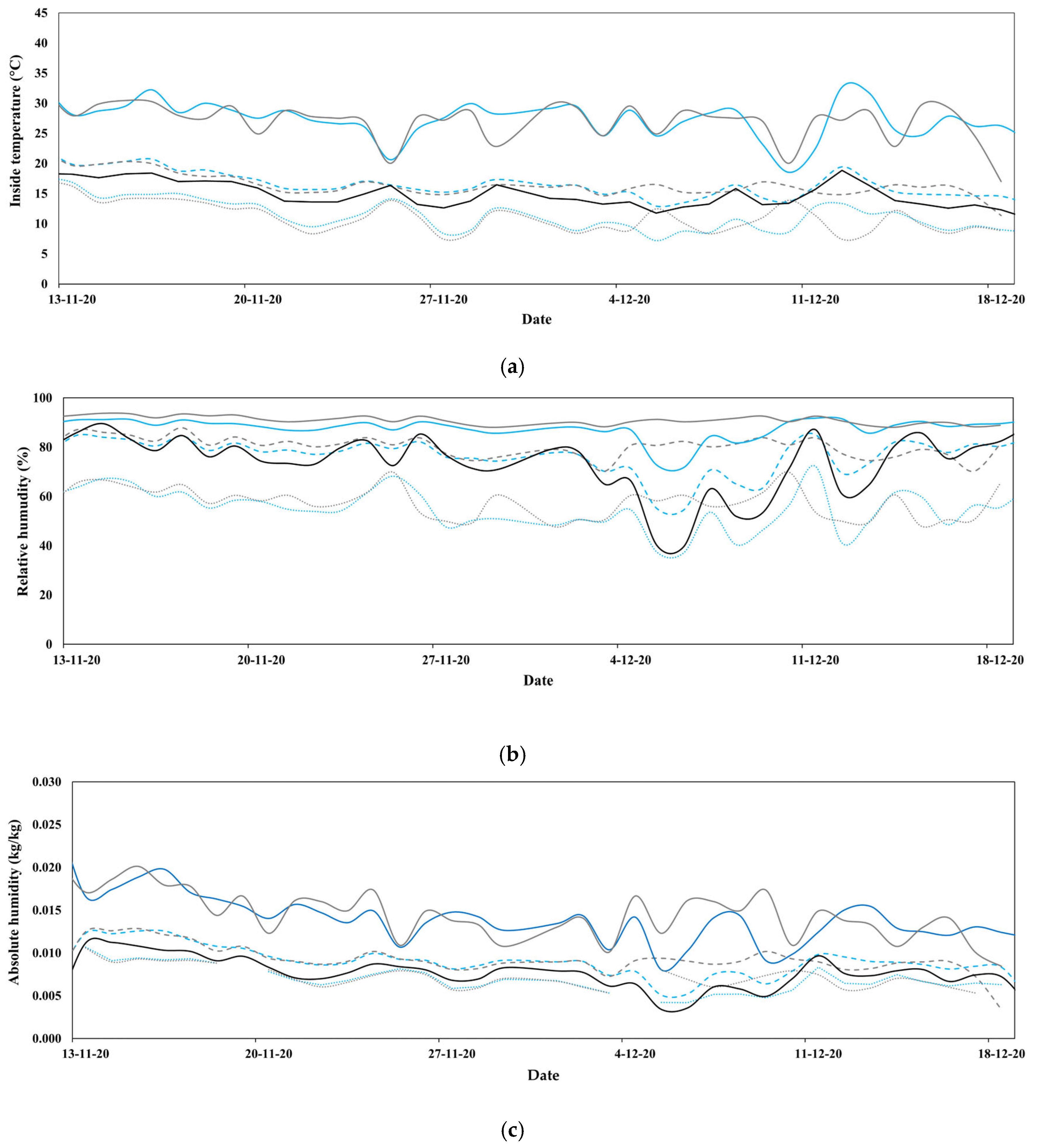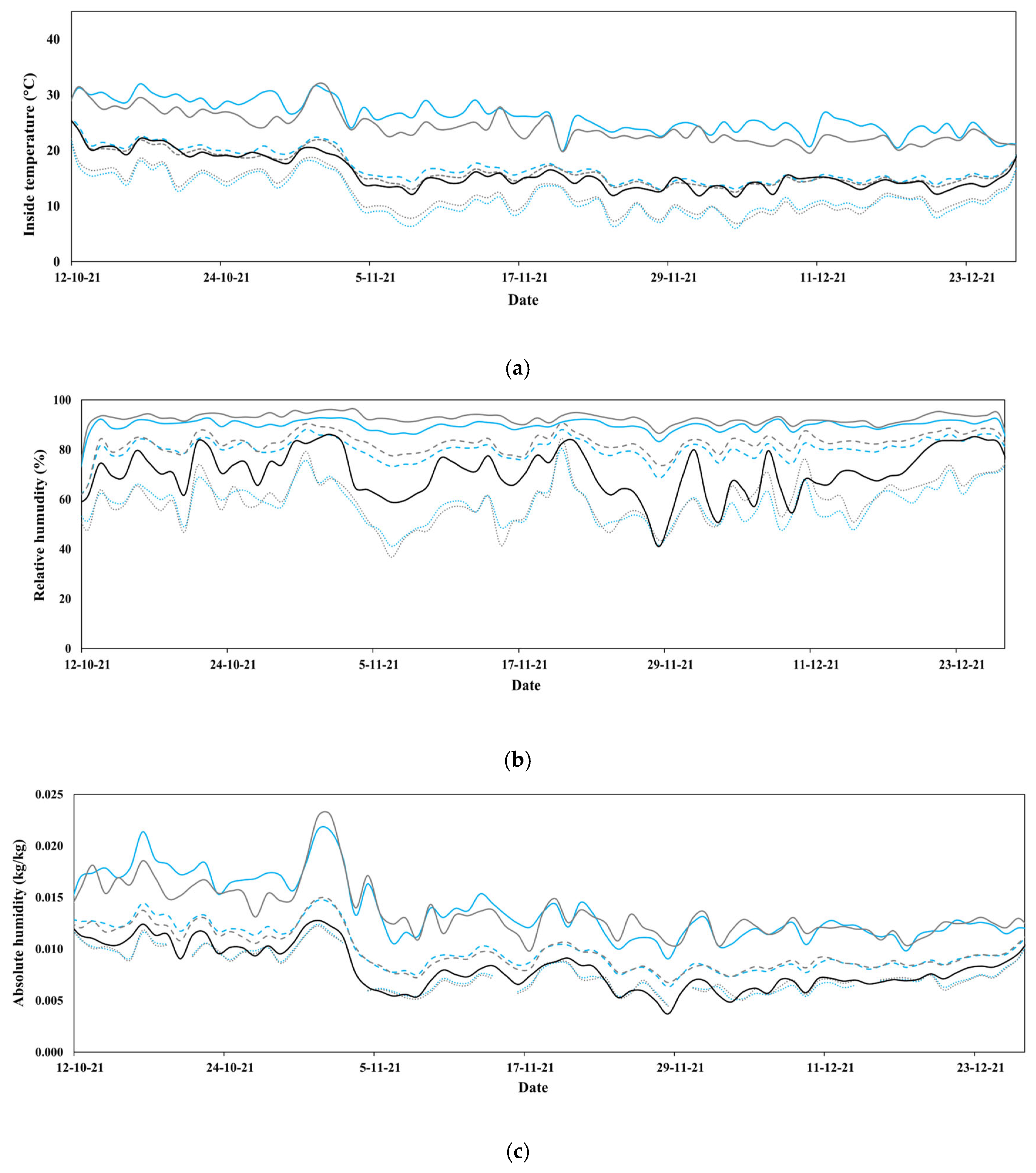 | Inside air temperature | HOBO® Pro Temp-HR U23-001 | Onset Computer Corp. (Pocasset, MA, USA) | −4–70 °C ± 0.18 °C | 0−100% ± 2.5% |