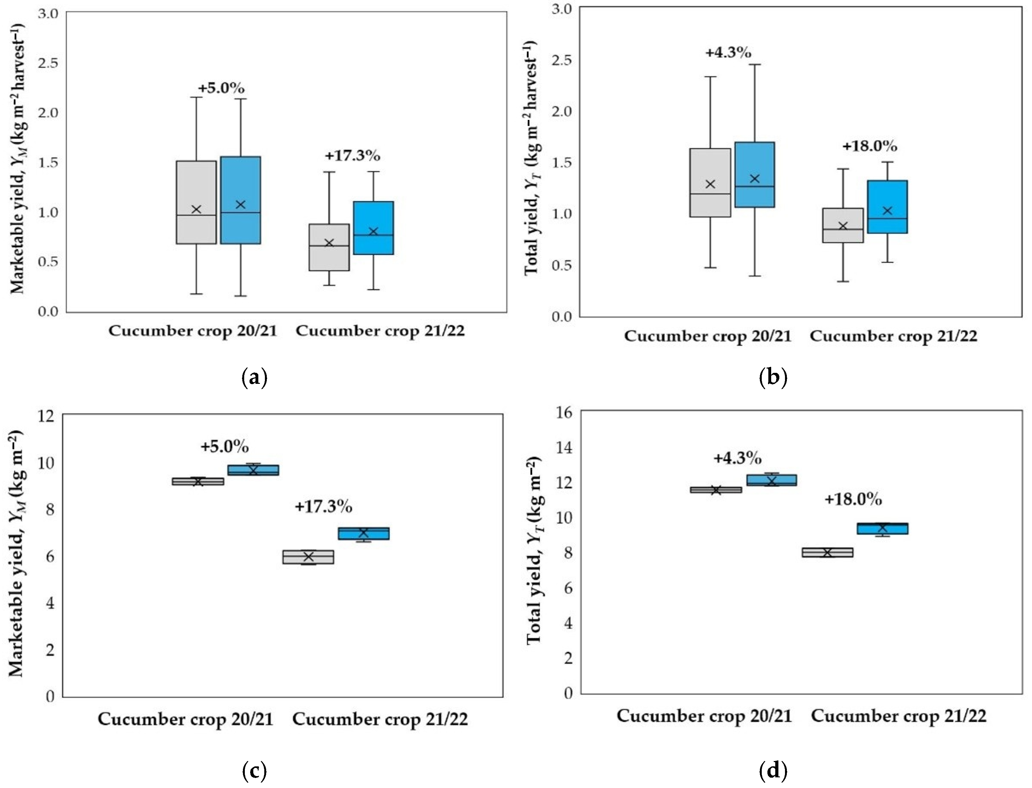 | Total yield YT (g m−2) | 7980 | 9410 |