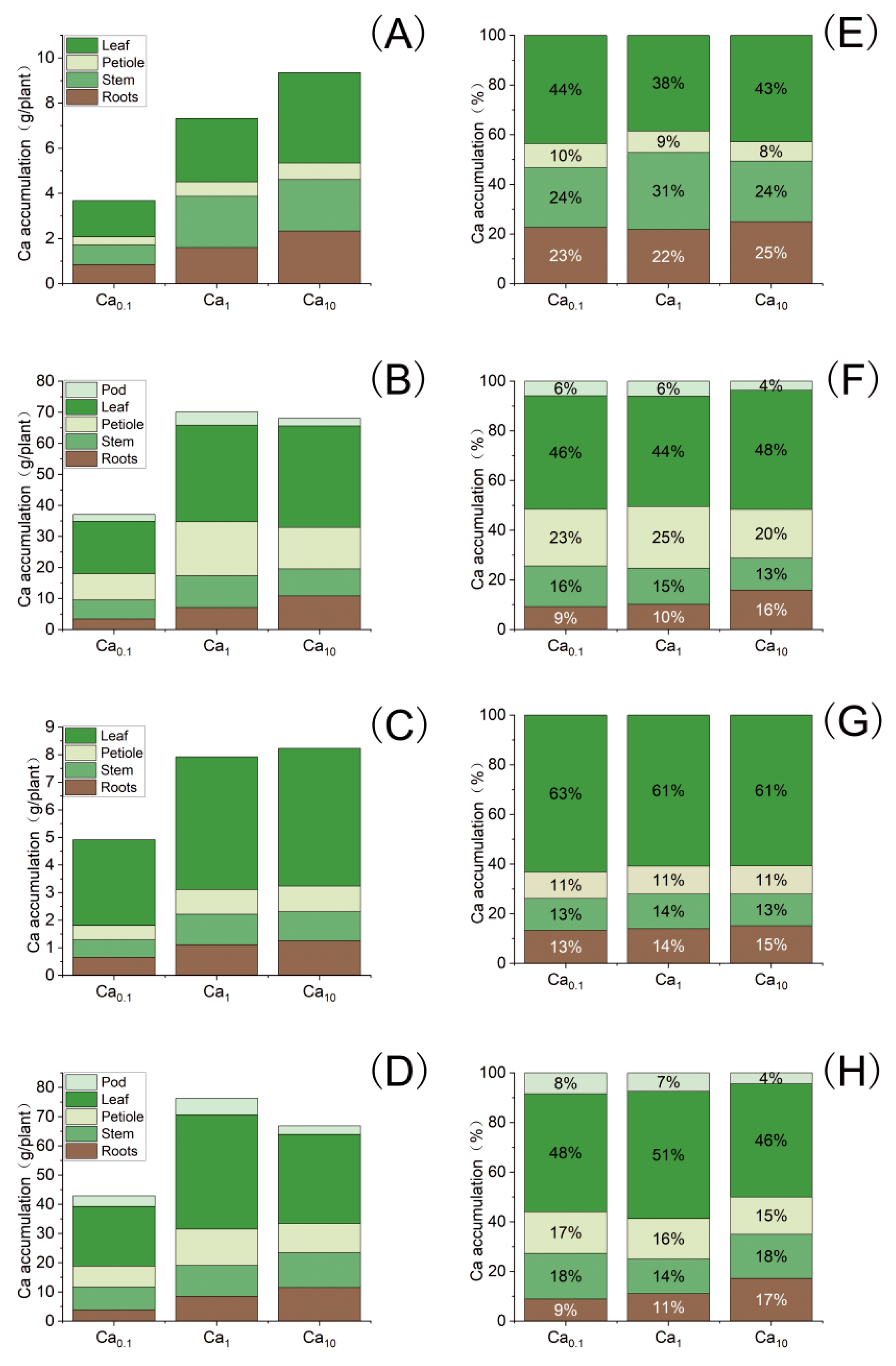3.1. Effects of Calcium Nutrition on Soybean Plant Growth