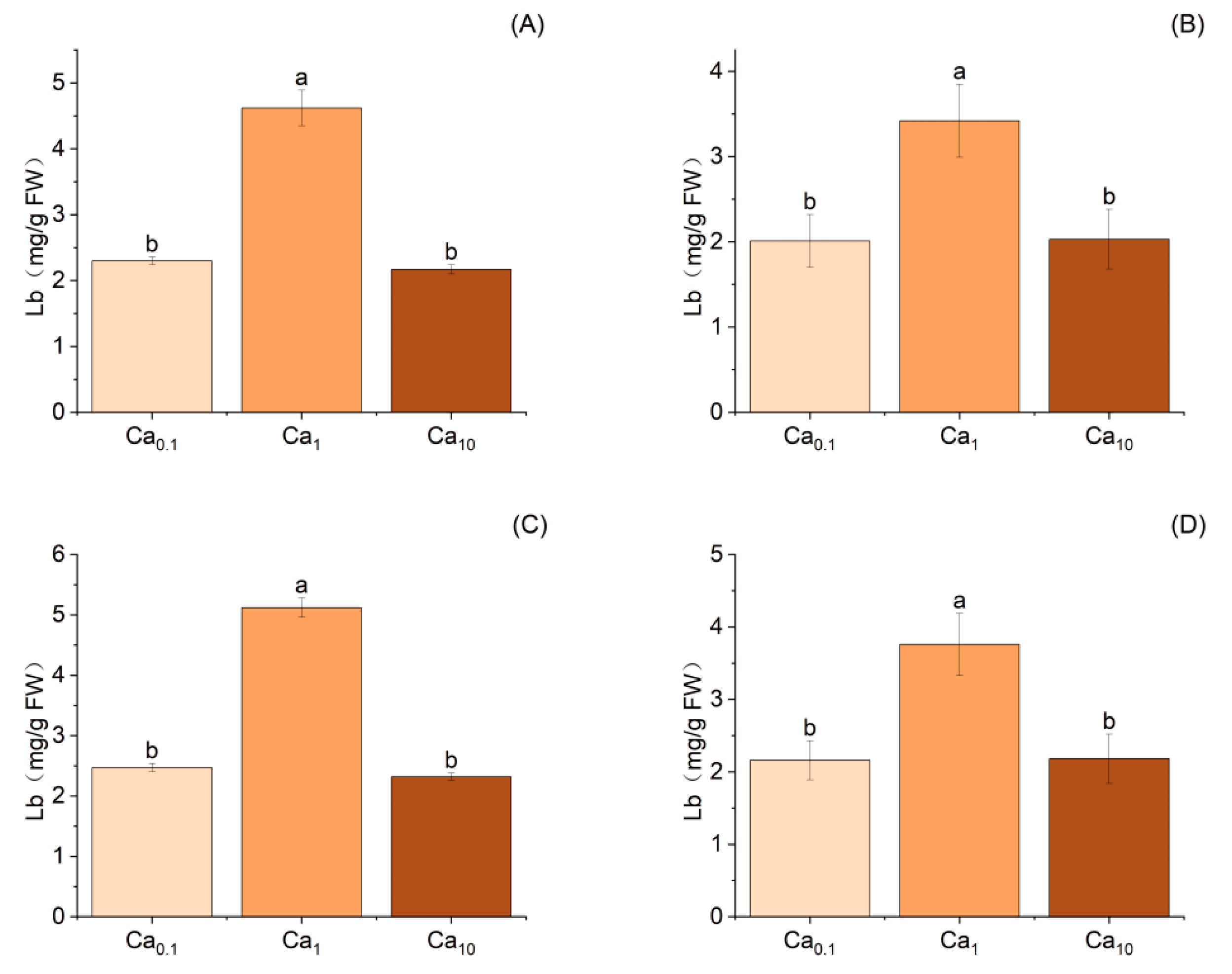 | Ca10 | 41.17± 8.71 b | 19.78 ± 1.15 b | 4.28 ± 1.68 b | 13.87 ± 3.82 b | |