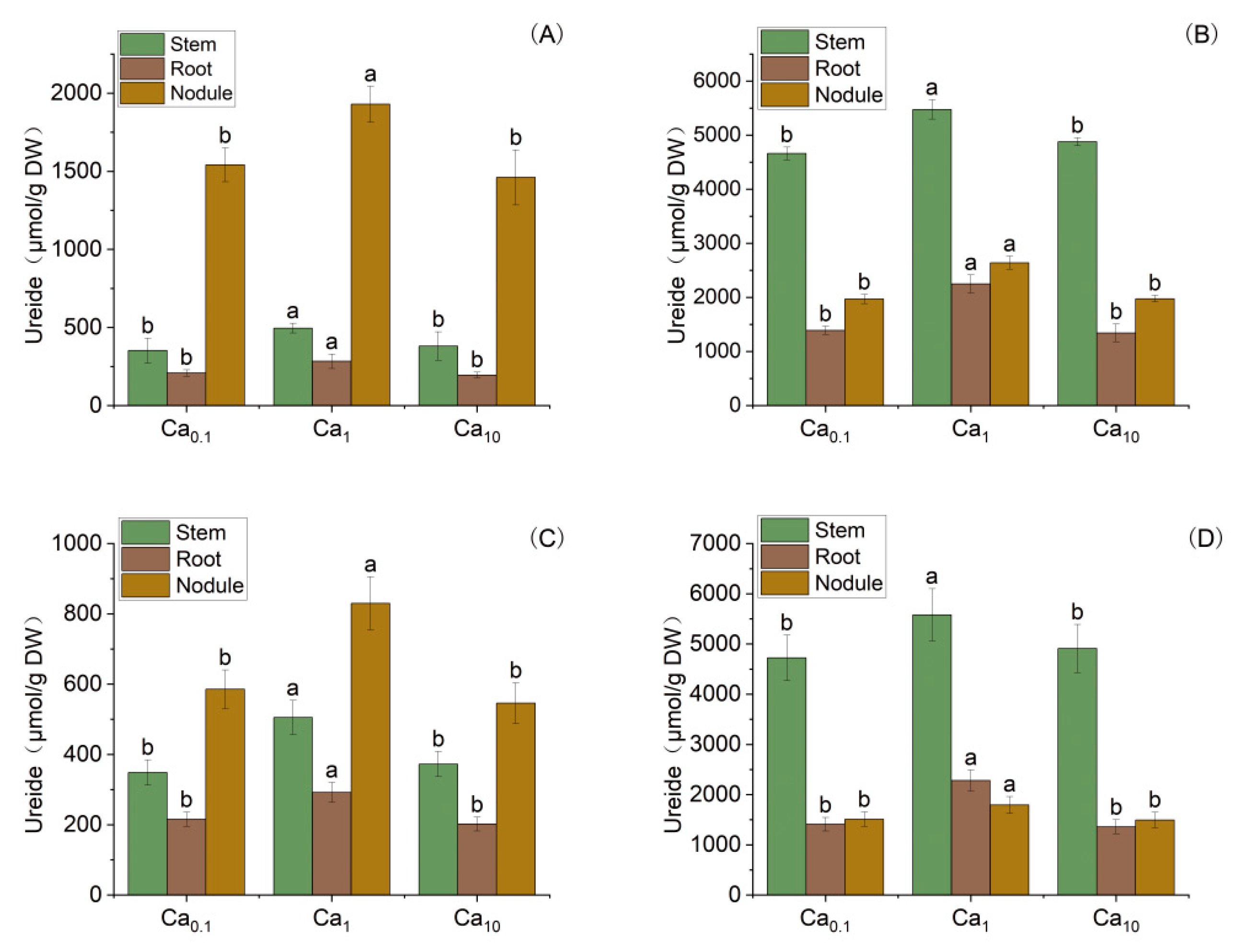 3.2. Effects of Calcium Nutrition on Nitrogen Fixation of Soybean Root Nodules
