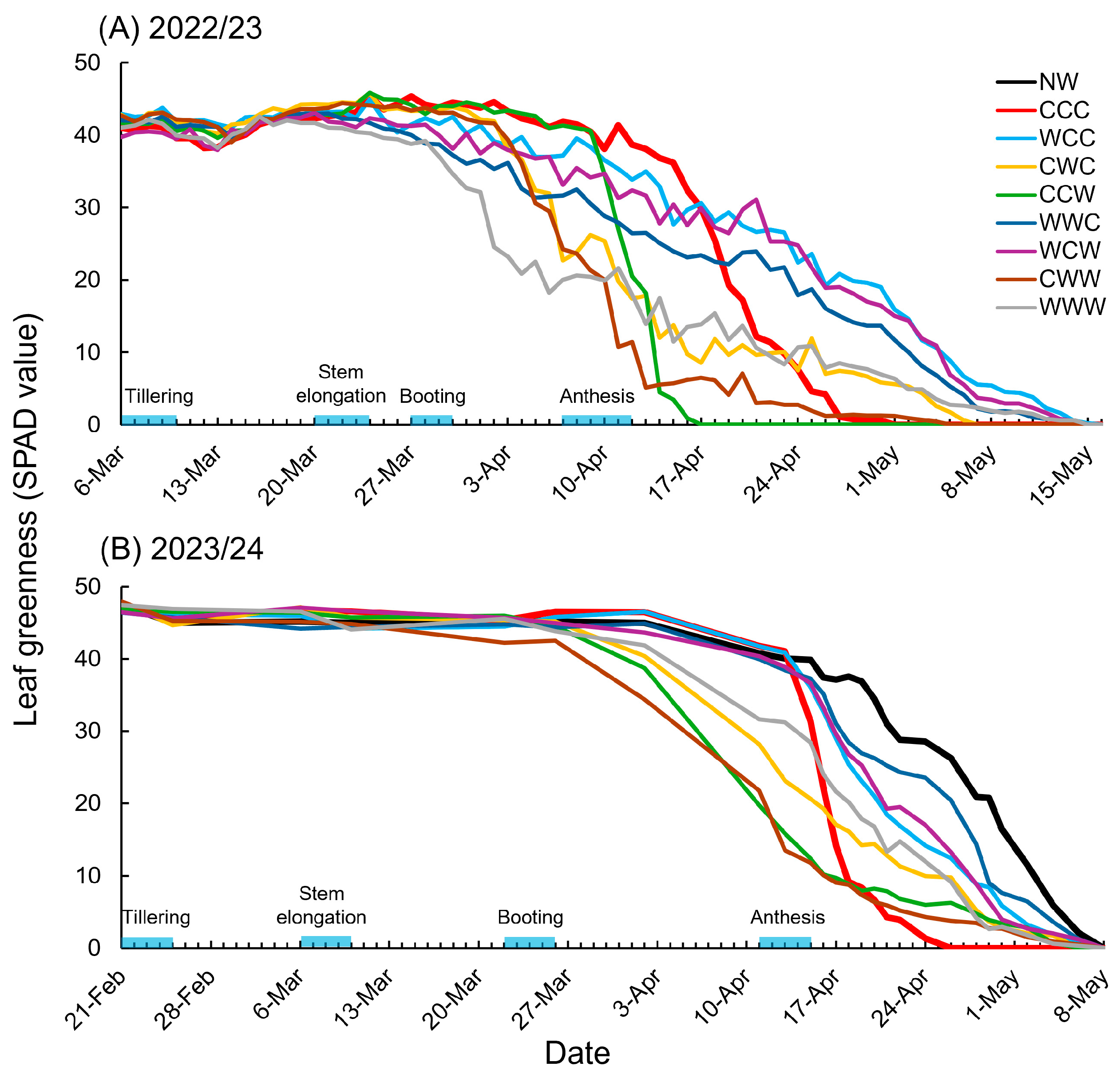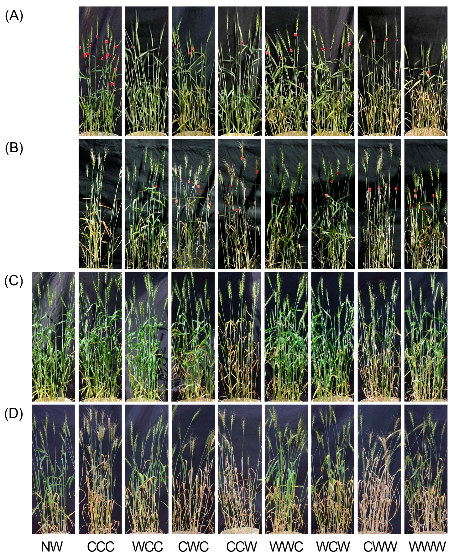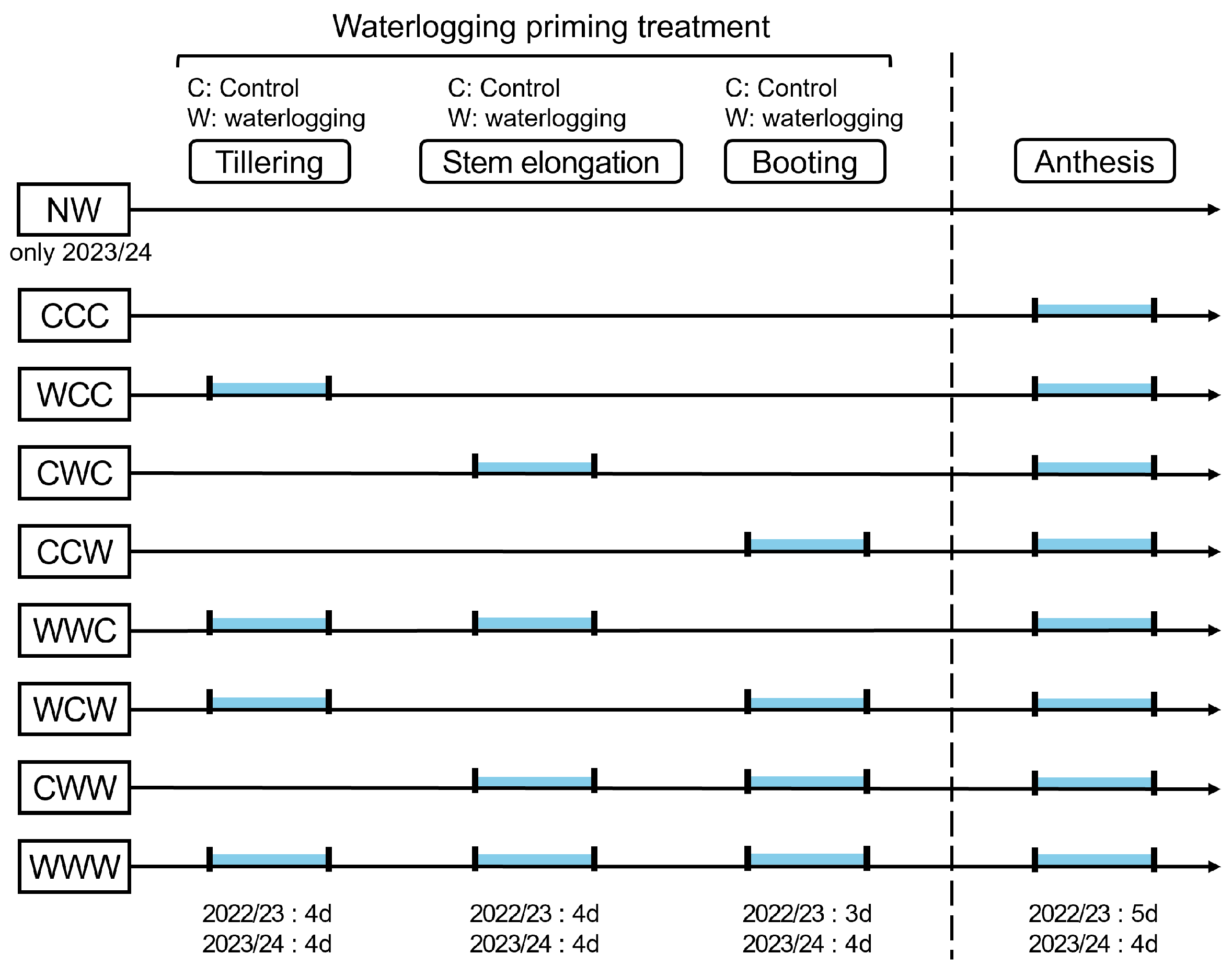 - Zhang, Y.F.; Wang, X.; Malko, M.M.; Zhou, Q.; Cai, J.; Zhong, Y.; Huang, M.; Jiang, D. Unravelling the long-term beneficial effects of stress priming-induced tolerance to waterlogging stress in wheat. Plant Growth Regul. 2025, 105, 2067–2084. [Google Scholar] [CrossRef]