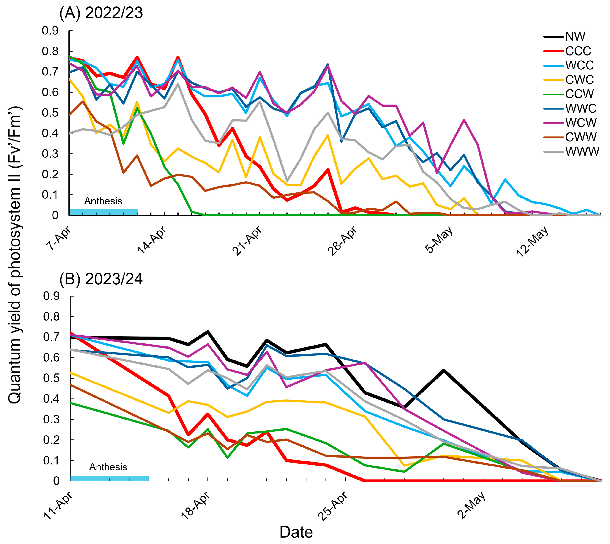 | Fv′/Fm′ | Quantum yield of photosystem II |