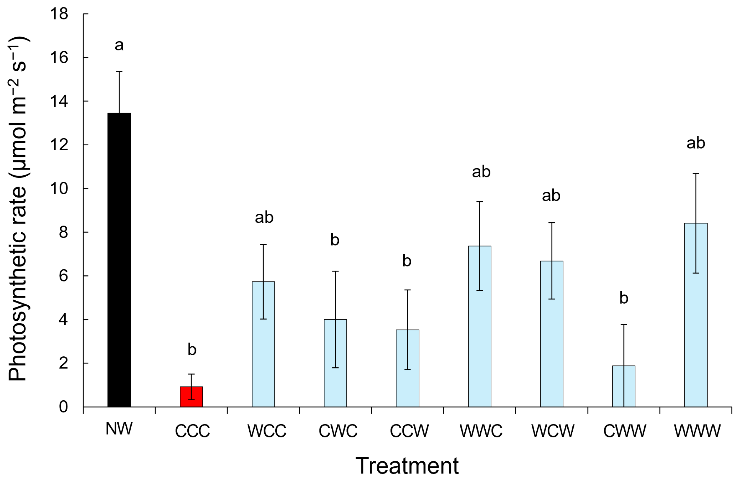 | WWW | 11.67 ± 2.07 | 27.40 ± 1.84 ab | 0.32 ± 0.05 ab |