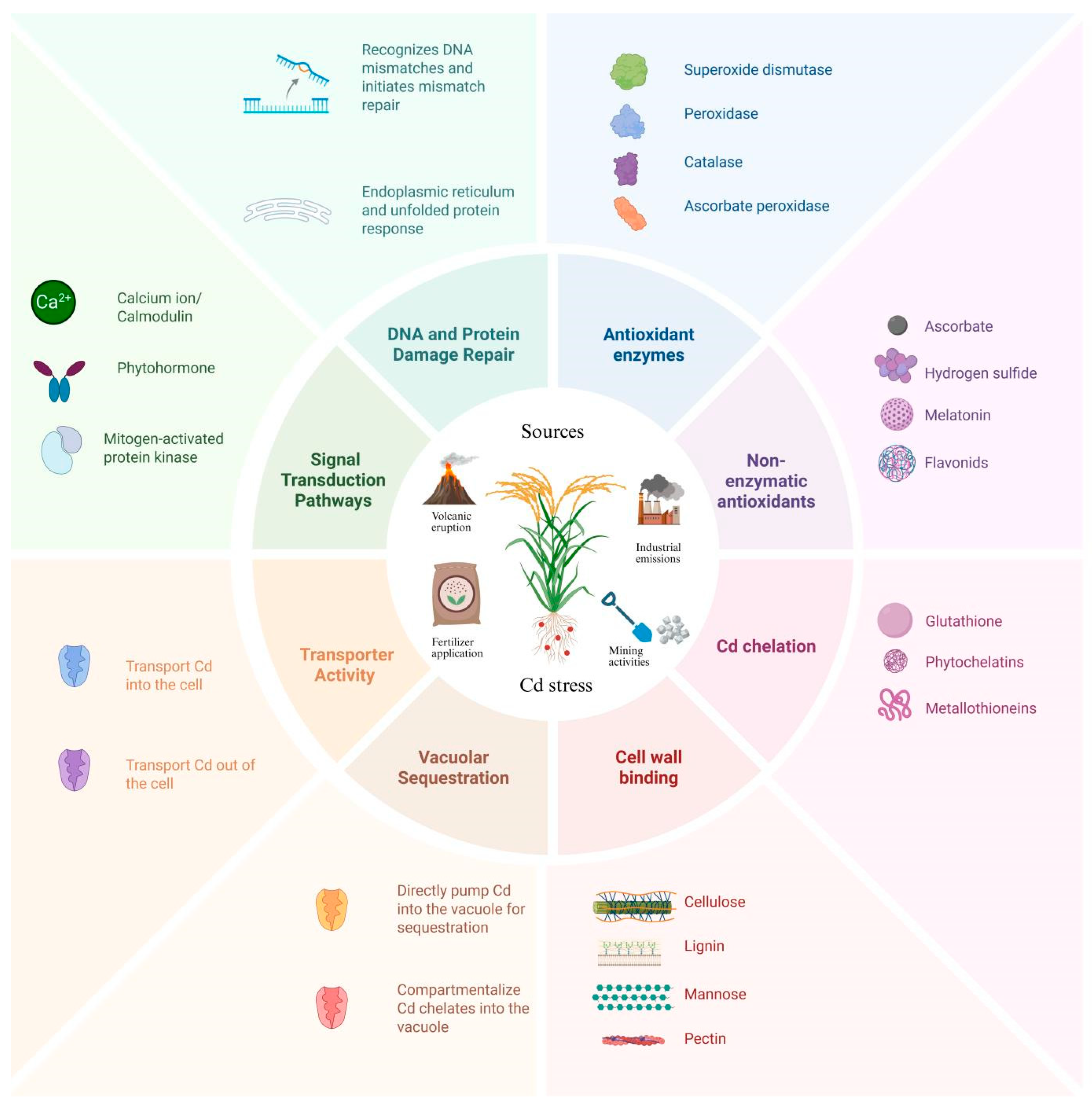 - Rizwan, M.; Ali, S.; Adrees, M.; Rizvi, H.; Zia-Ur-Rehman, M.; Hannan, F.; Qayyum, M.F.; Hafeez, F.; Ok, Y.S. Cadmium stress in rice: Toxic effects, tolerance mechanisms, and management: A critical review. Environ. Sci. Pollut. Res. 2016, 23, 17859–17879. [Google Scholar] [CrossRef] [PubMed]