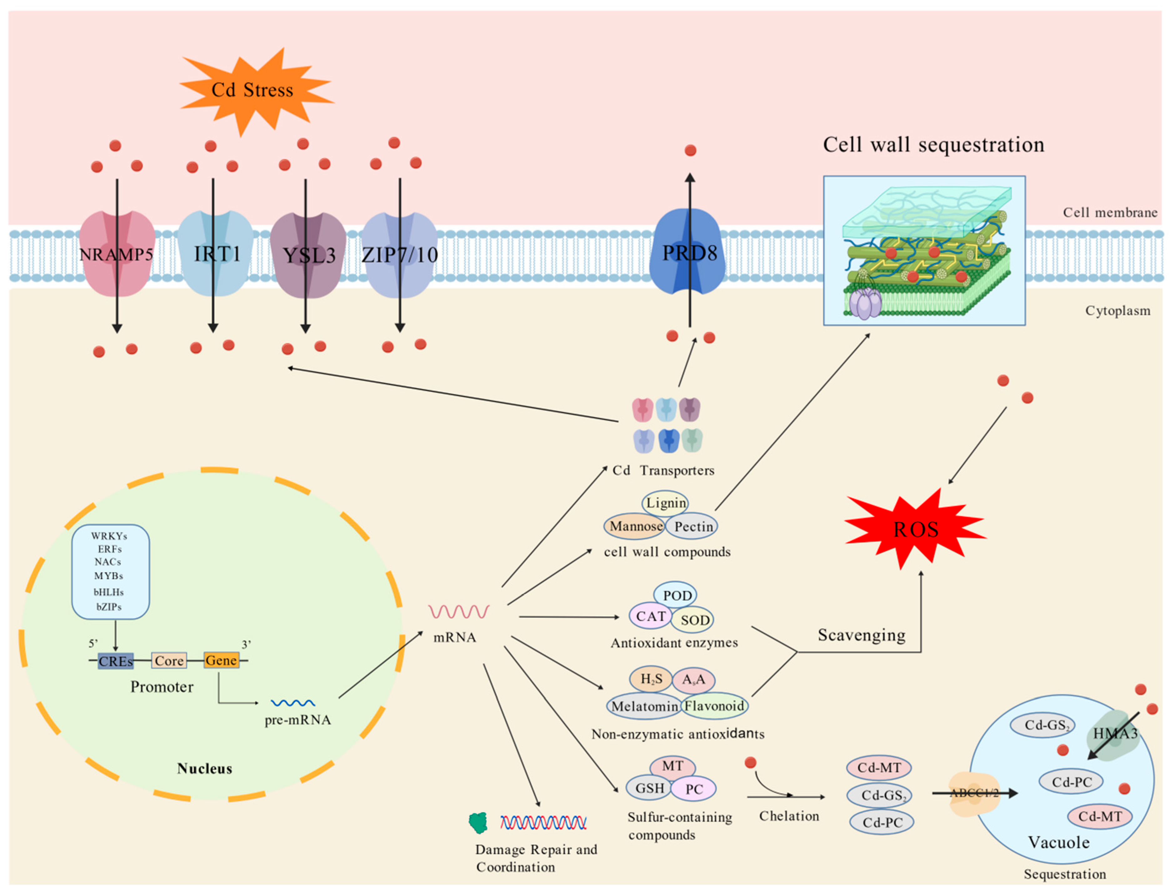 2. Mechanisms and Transcription Factors Regulating Cd Tolerance and/or Accumulation in Plants