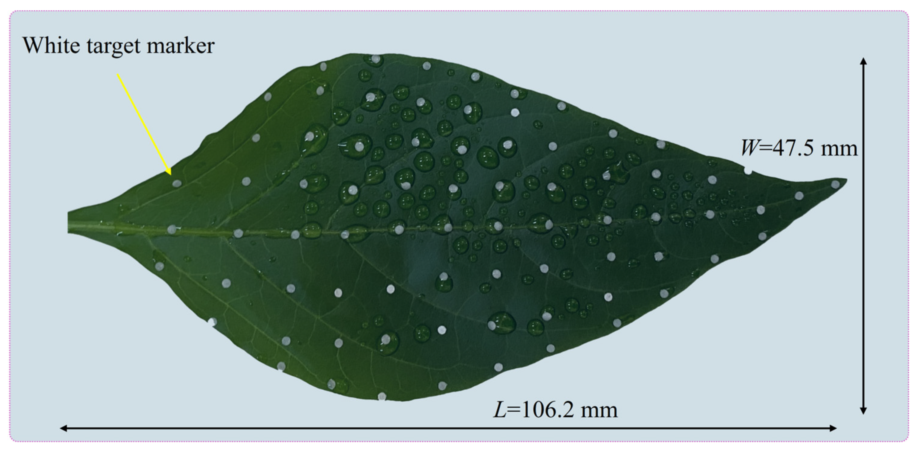 - Wang, Z.; Zheng, C.; Li, T.; He, X. Analysing the Preference for Pesticide Spray to Be Deposited at Leaf-Tips. Biosyst. Eng. 2021, 204, 247–256. [Google Scholar] [CrossRef]