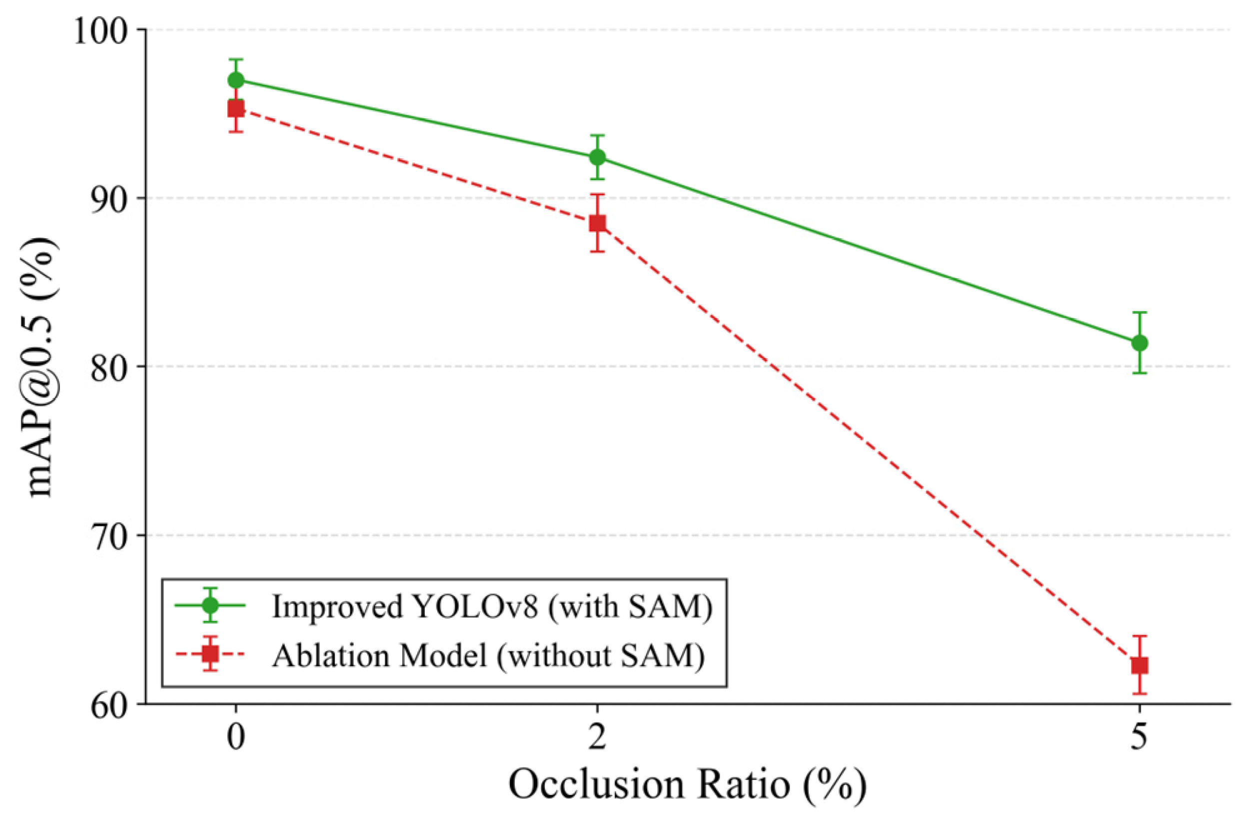 | 0% | Baseline YOLOv8 | 95.1 ± 1.5 | 95.2 ± 1.1 | 94.8 ± 1.0 |