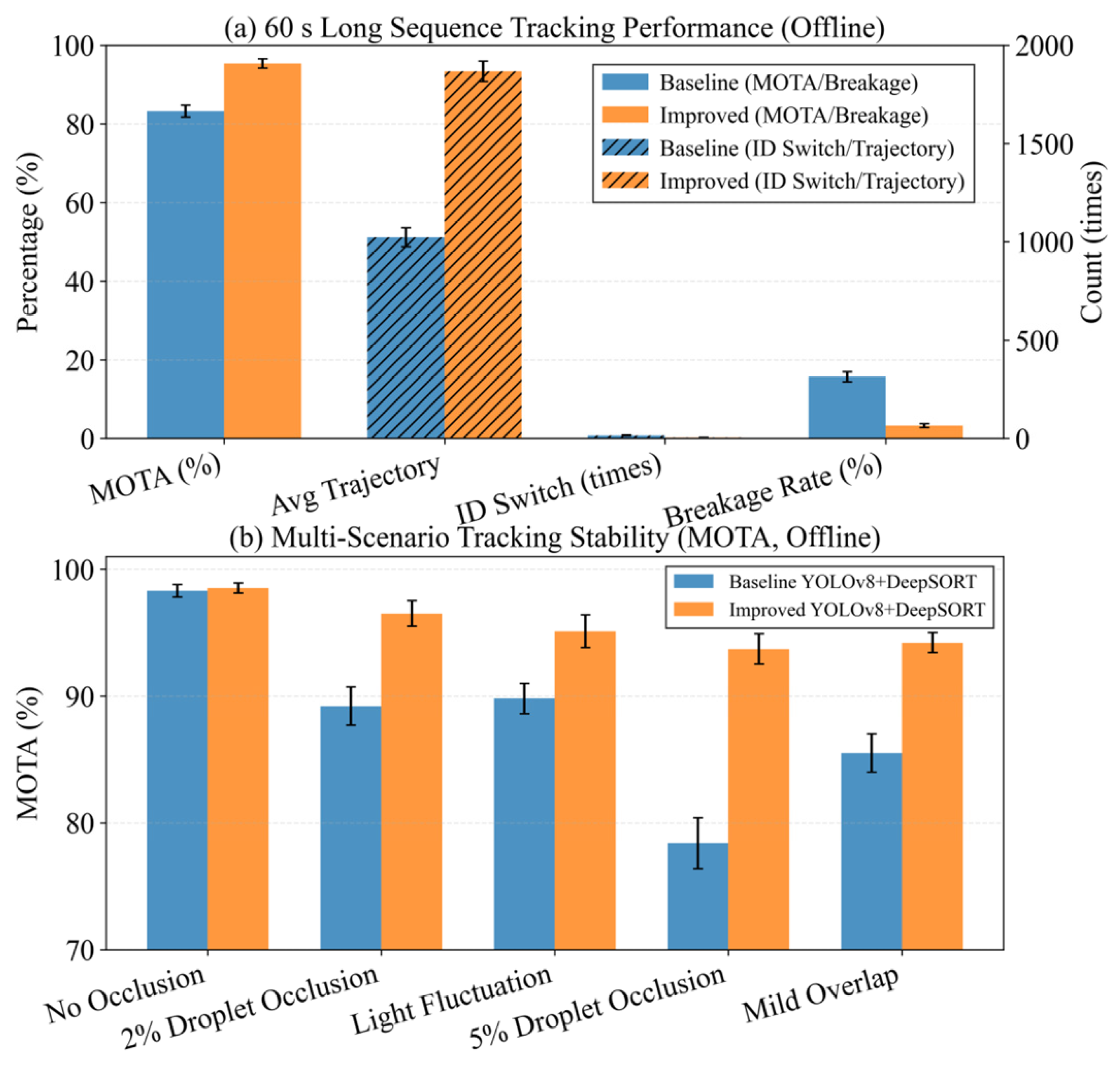 Chicago/Turabian StyleGuo, Fengfeng, Kuan Liu, Jing Ma, and Baijing Qiu. 2026. "Application of the Improved YOLOv8-DeepSORT Framework in Motion Tracking of Pepper Leaves Under Droplet Occlusion" Agronomy 16, no. 3: 384. https://doi.org/10.3390/agronomy16030384