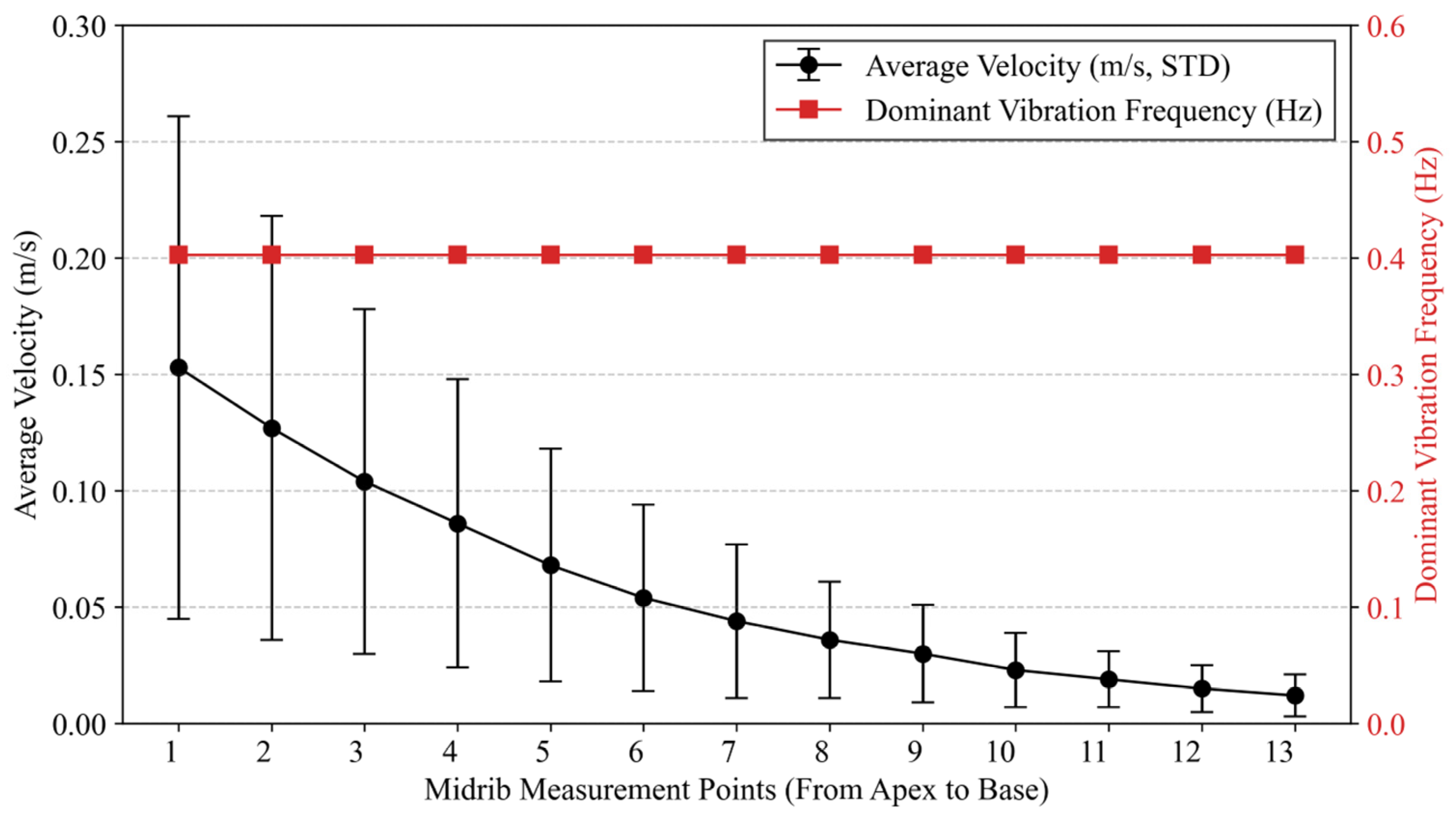 3.4.1. Quantification of Motion Parameters at Each Point of the Leaf Midrib