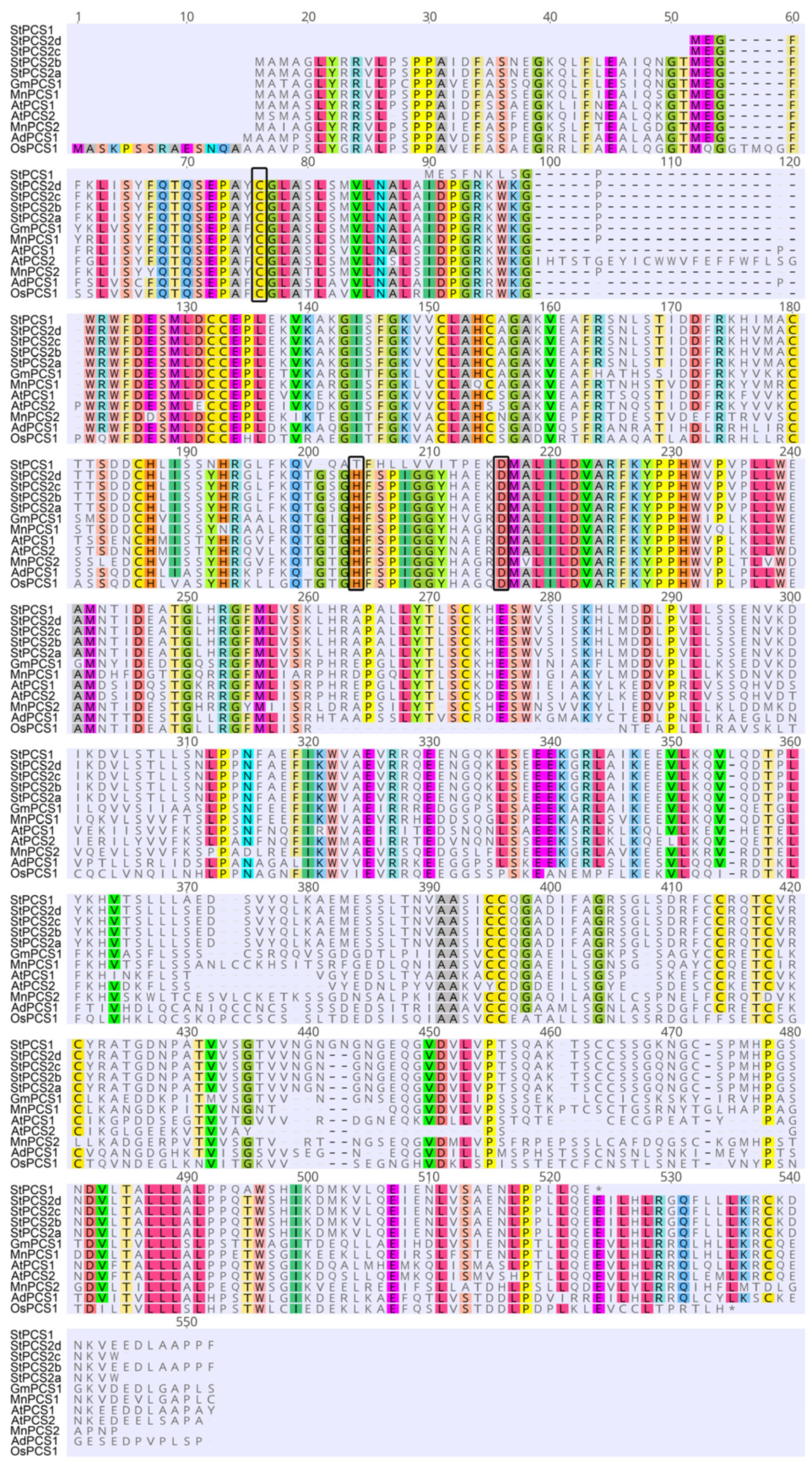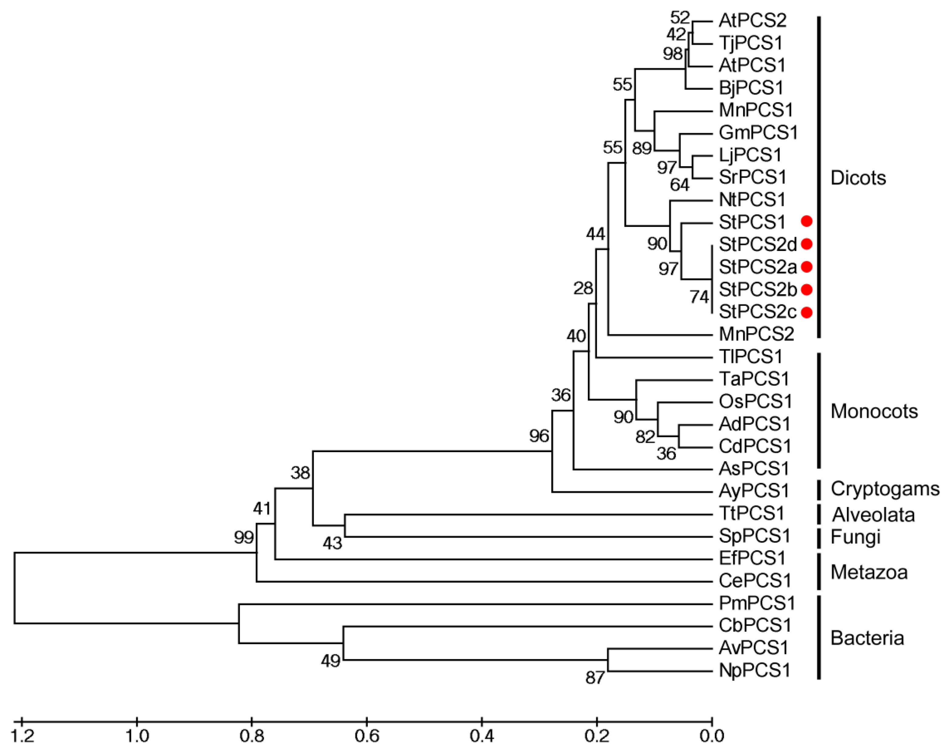 3.3. Multiple Sequence Alignment and Phylogenetic Analysis of StPCSs
