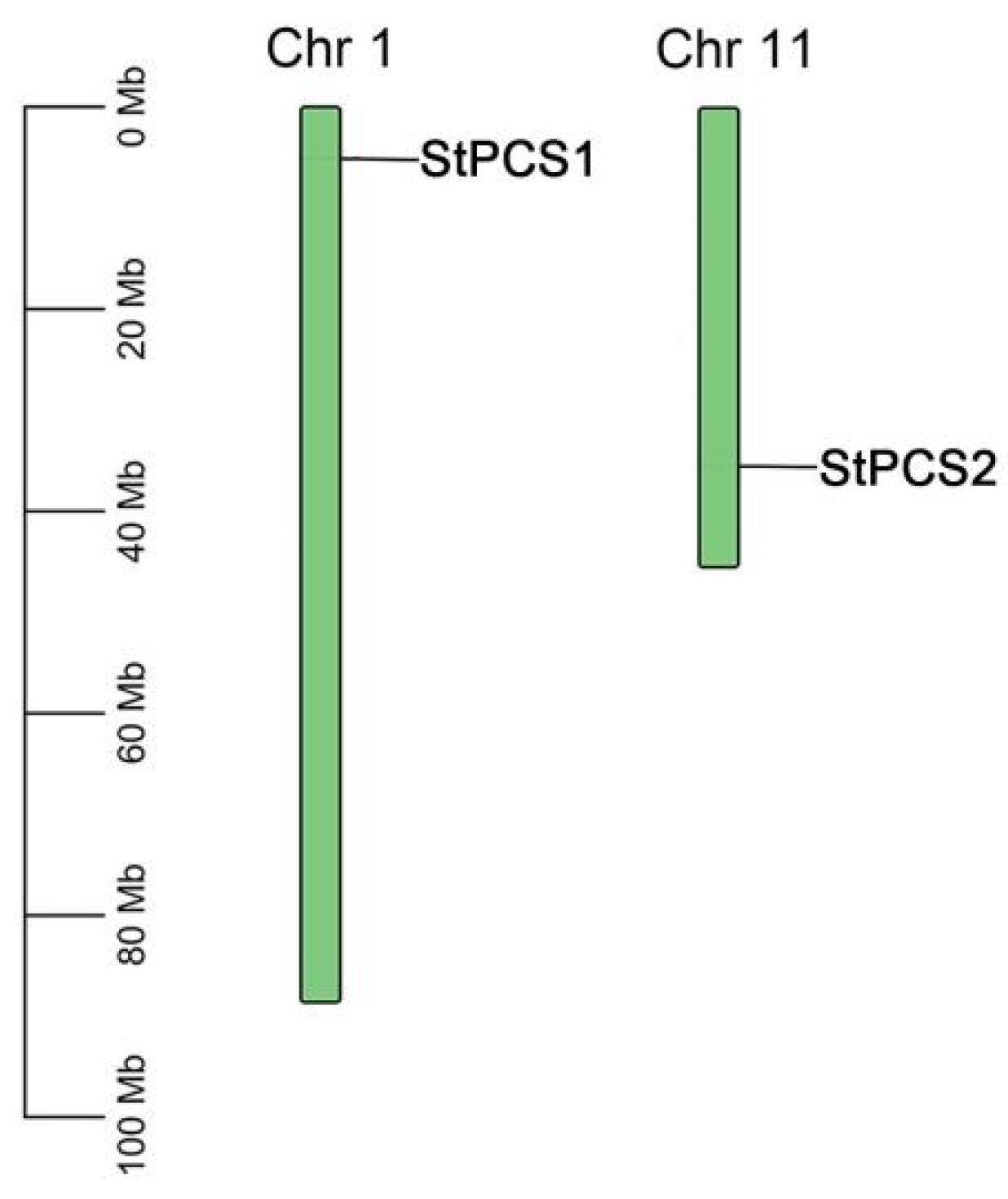 3.1. Identification of StPCS Genes