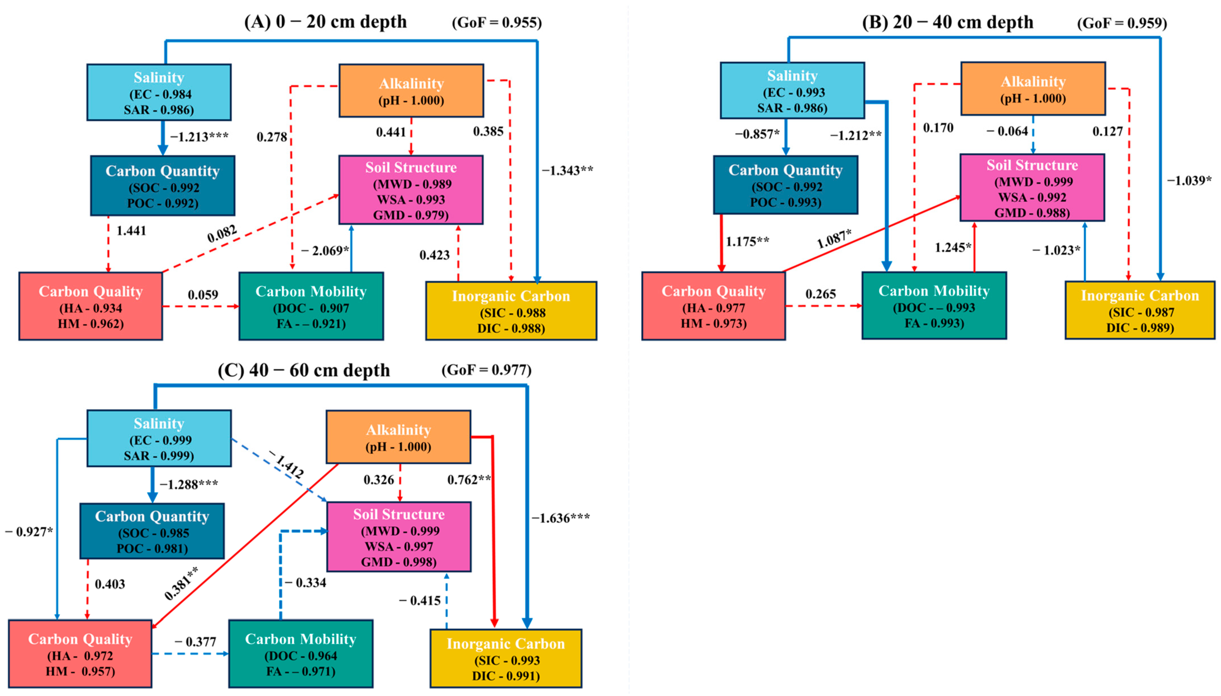 - Setia, R.; Gottschalk, P.; Smith, P.; Marschner, P.; Baldock, J.; Setia, D.; Smith, J. Soil Salinity Decreases Global Soil Organic Carbon Stocks. Sci. Total Environ. 2013, 465, 267–272. [Google Scholar] [CrossRef]