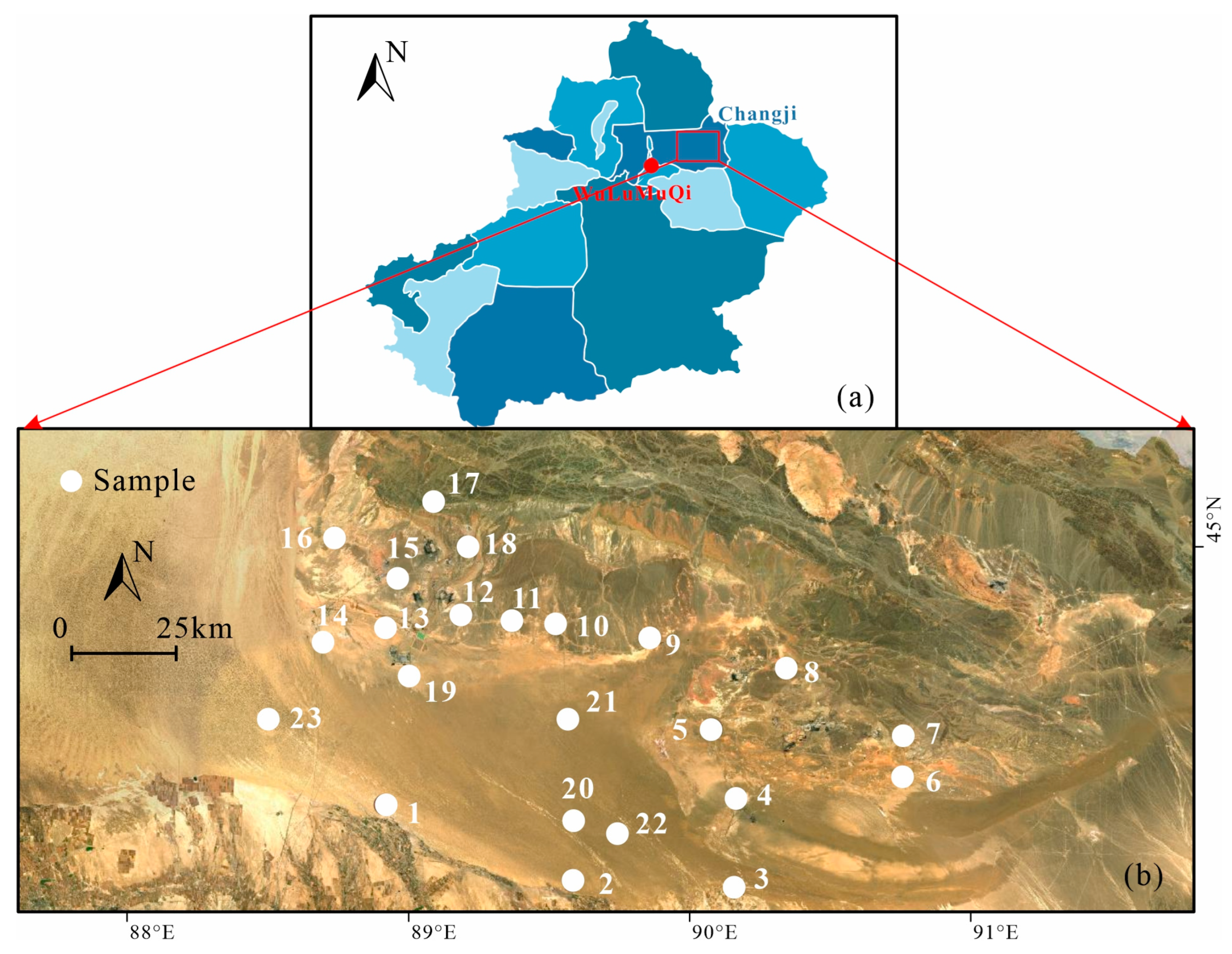 - Liu, W.; Yang, J.-j.; Wang, J.; Wang, G.; Cao, Y.-e. Contamination Assessment and Sources Analysis of Soil Heavy Metals in Opencast Mine of East Junggar Basin in Xinjiang. Huanjing Kexue 2016, 37, 1938–1945. [Google Scholar]