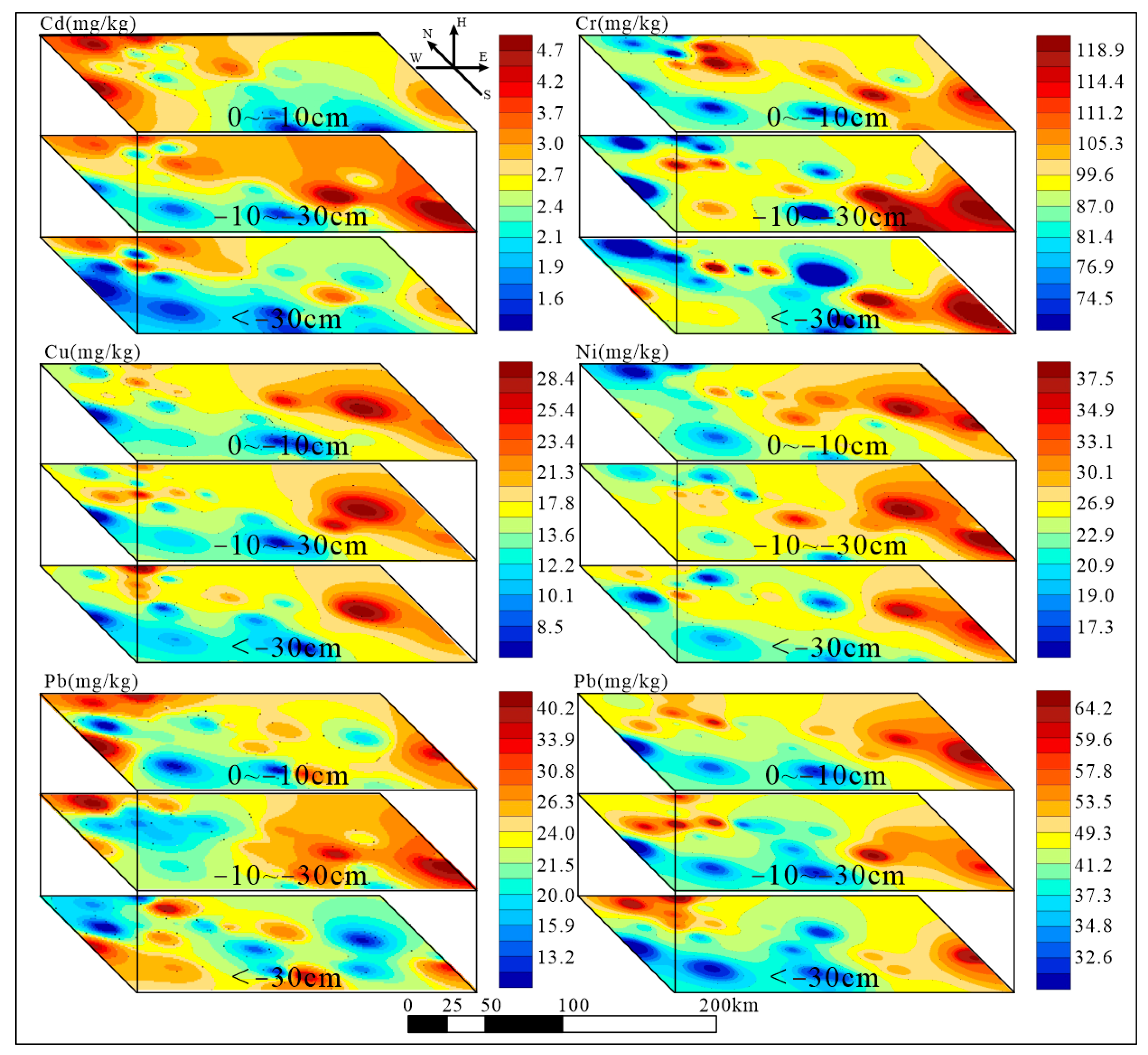 - Zhao, M.; Chen, Z.; Qian, C.; Zhao, Y.; Xu, Y.; Liu, Y. Correcting correlation quality of portable X-ray fluorescence to better map heavy metal contamination by spatial co-kriging interpolation. Ecotoxicol. Environ. Saf. 2024, 271, 115962. [Google Scholar] [CrossRef] [PubMed]