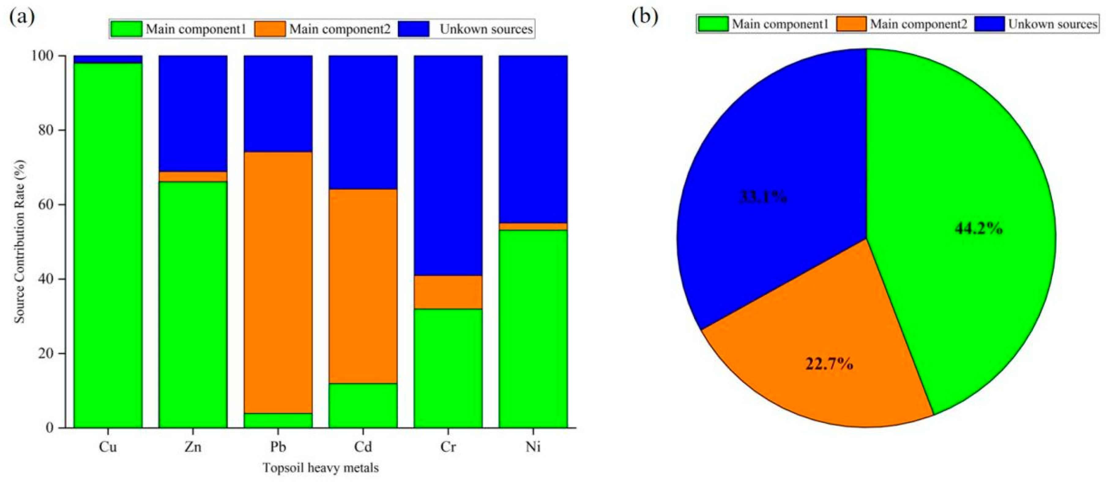 3.3. Heavy Metal Pollution Sources in Topsoil