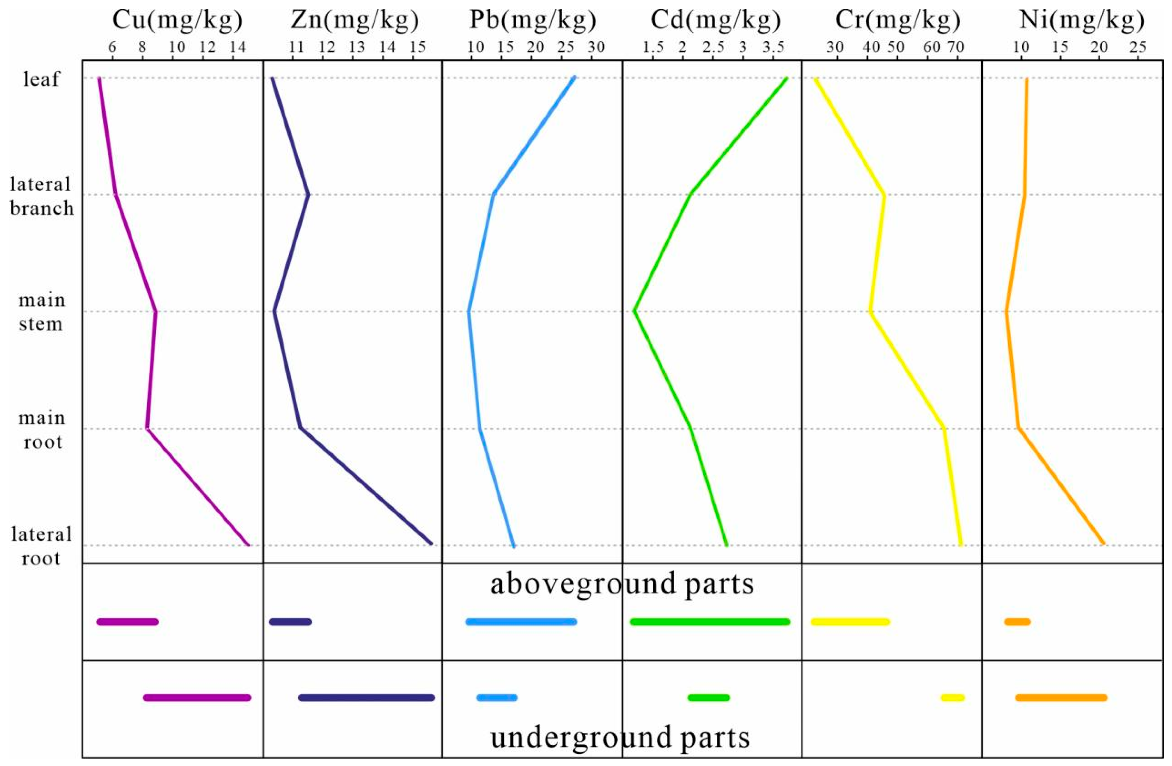 - Li, C.; Zhu, G.; Peng, K. Study on soil pollution characteristics by heavy metals and the plant concentration in green belts. J. Cent. South Univ. For. Technol. 2016, 36, 101–107. [Google Scholar]