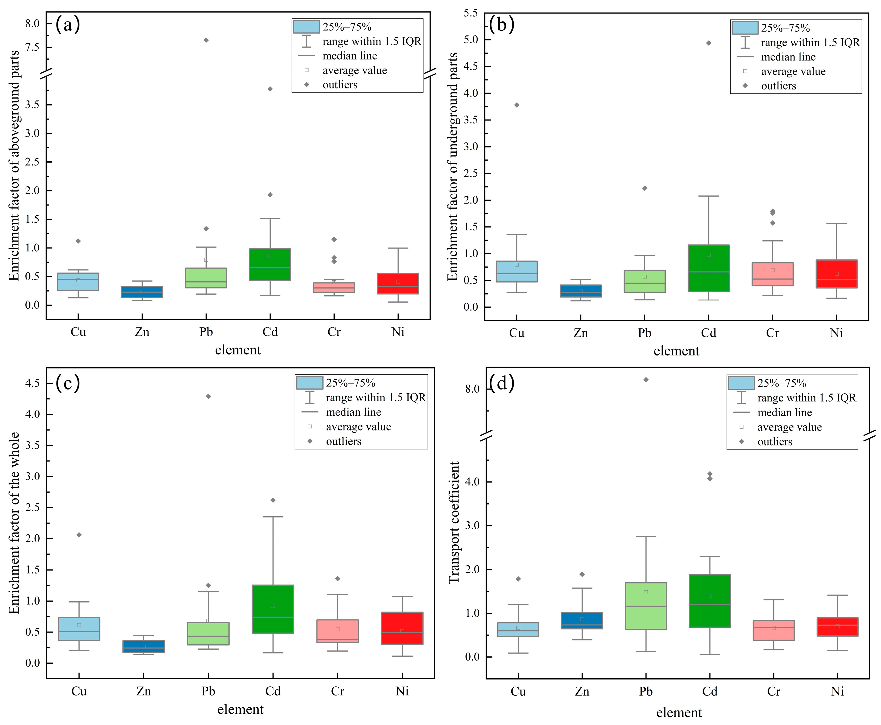 | Aboveground Content | Underground Content | Aboveground Enrichment Coefficient | Underground Enrichment Coefficient | Translocation Coefficient | |