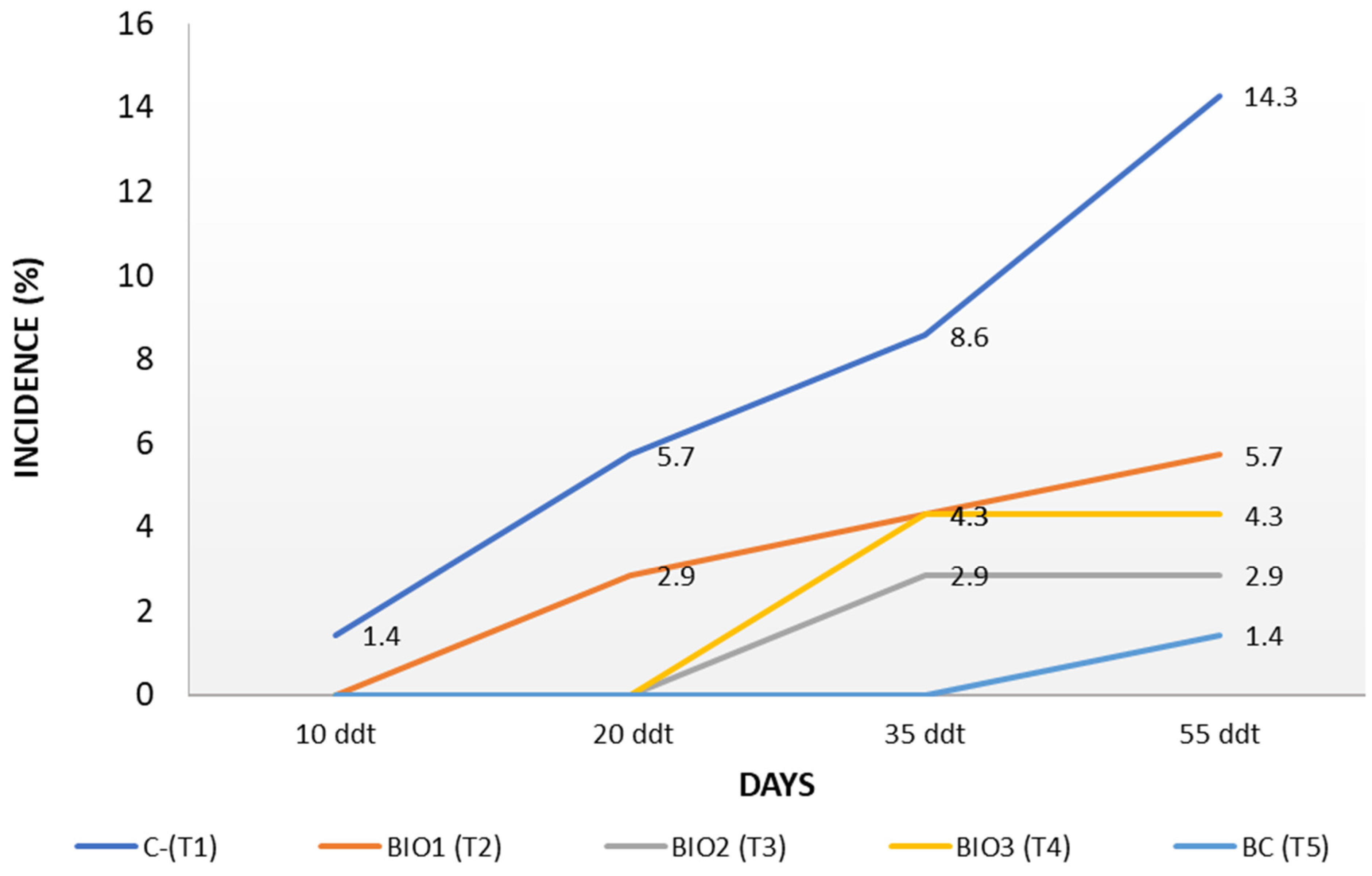 | T5: Commercial P. (B. subtilis) | 1.43 | c | 90.00 | 14.29 | c |