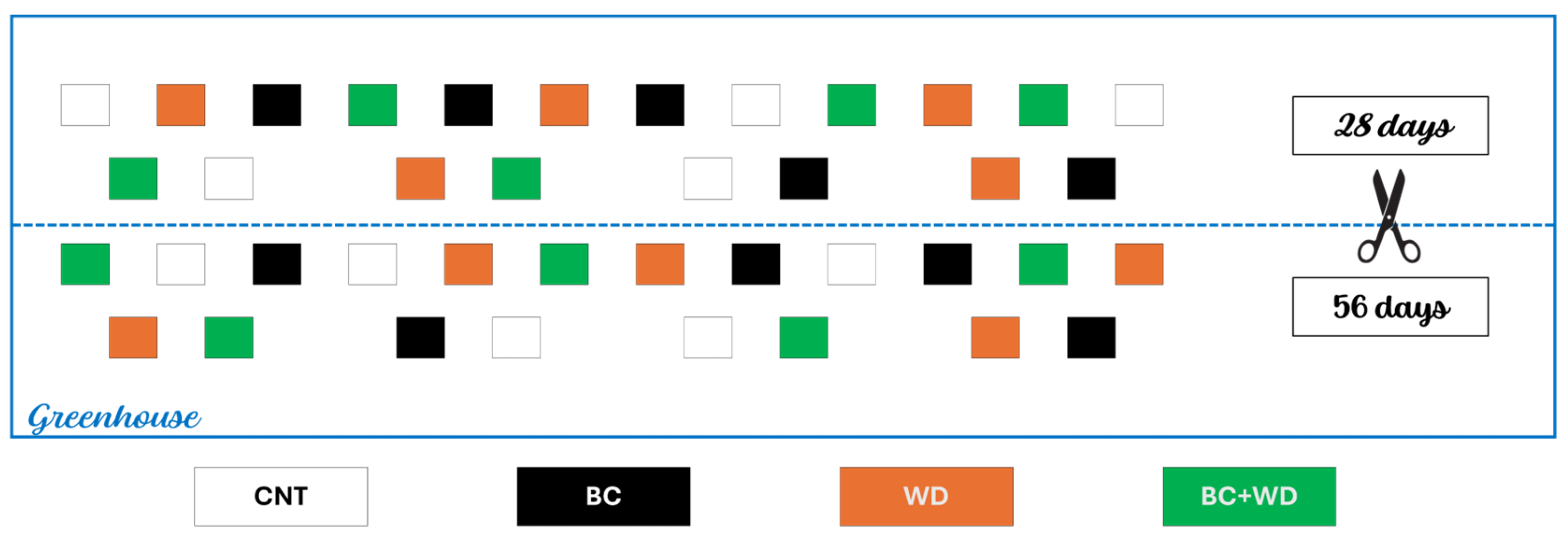 4.1. The Combination of BC and WD Induces an Increase in Available P and Exchangeable K in a Nutrient-Poor Soil After 56 Days of Treatment, Even Though the Effect of BC Is More Remarkable than That of WD