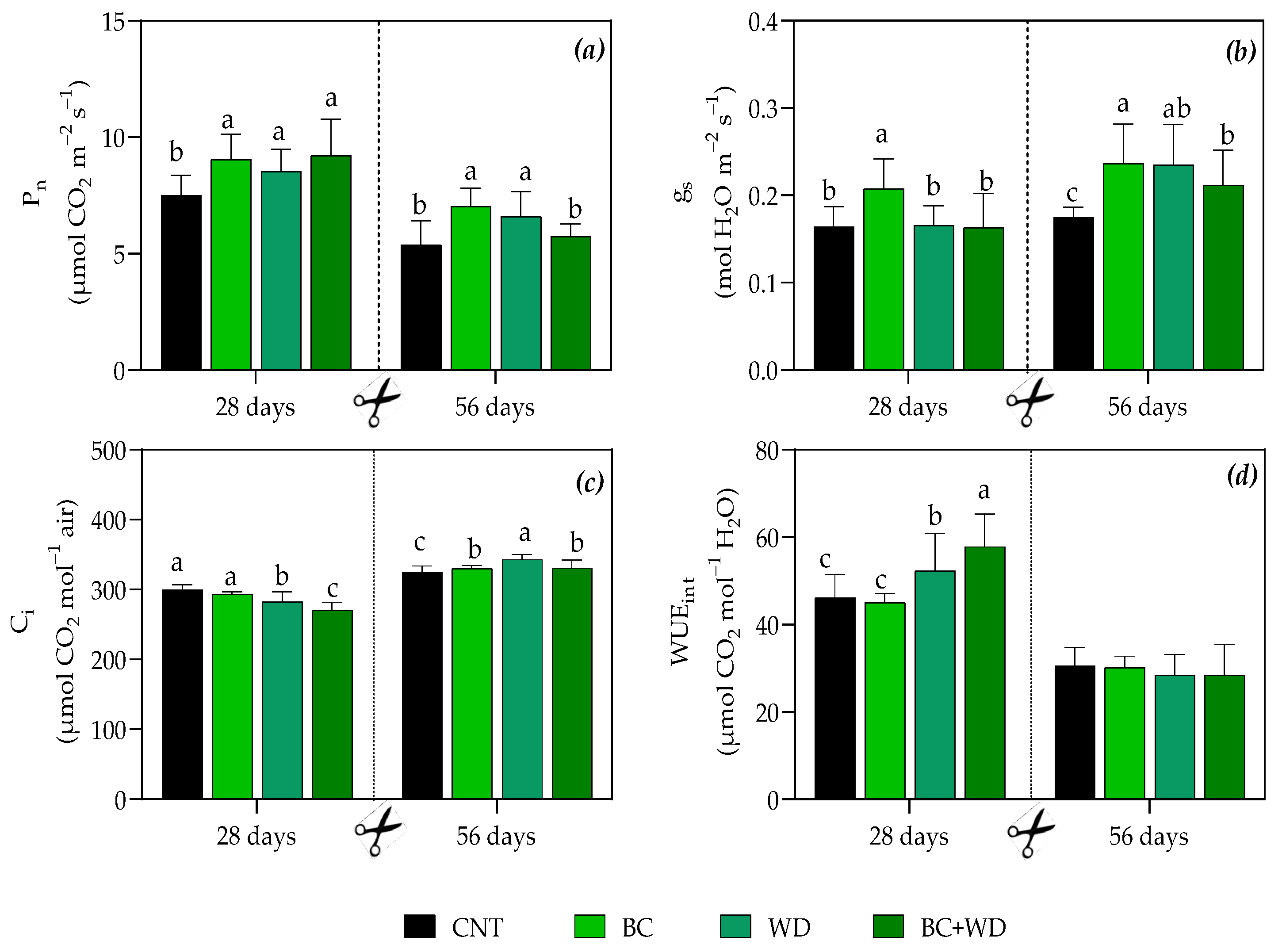 | BC + WD | 13.18 ± 0.86 b | 24.86 ± 1.31 a |