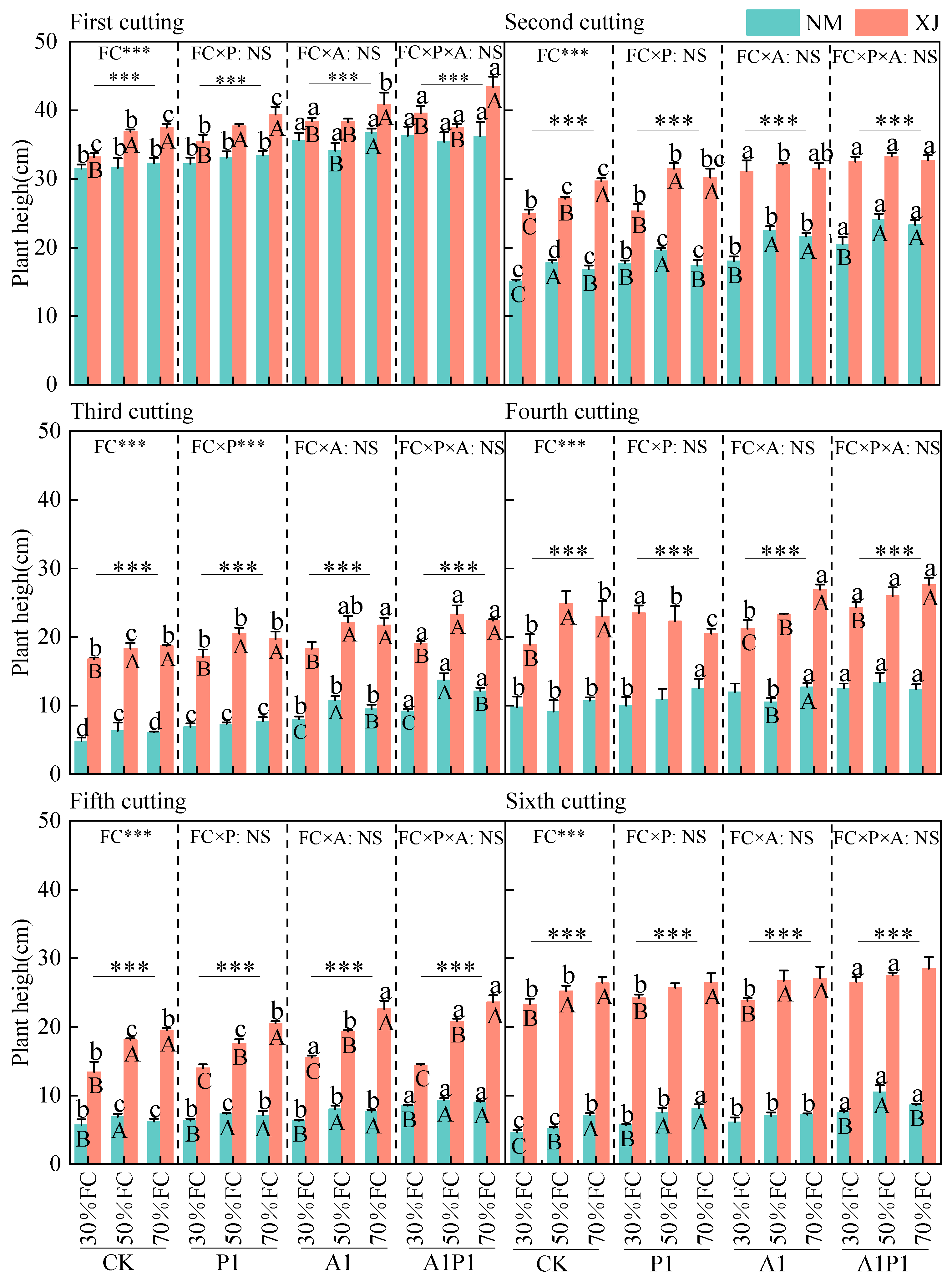 | 70% FC | CK | 0.36 ± 0.03 B** | 0.49 ± 0.02 Aa | 3.78 ± 0.12 Aa*** | 1.13 ± 0.13 Bd |