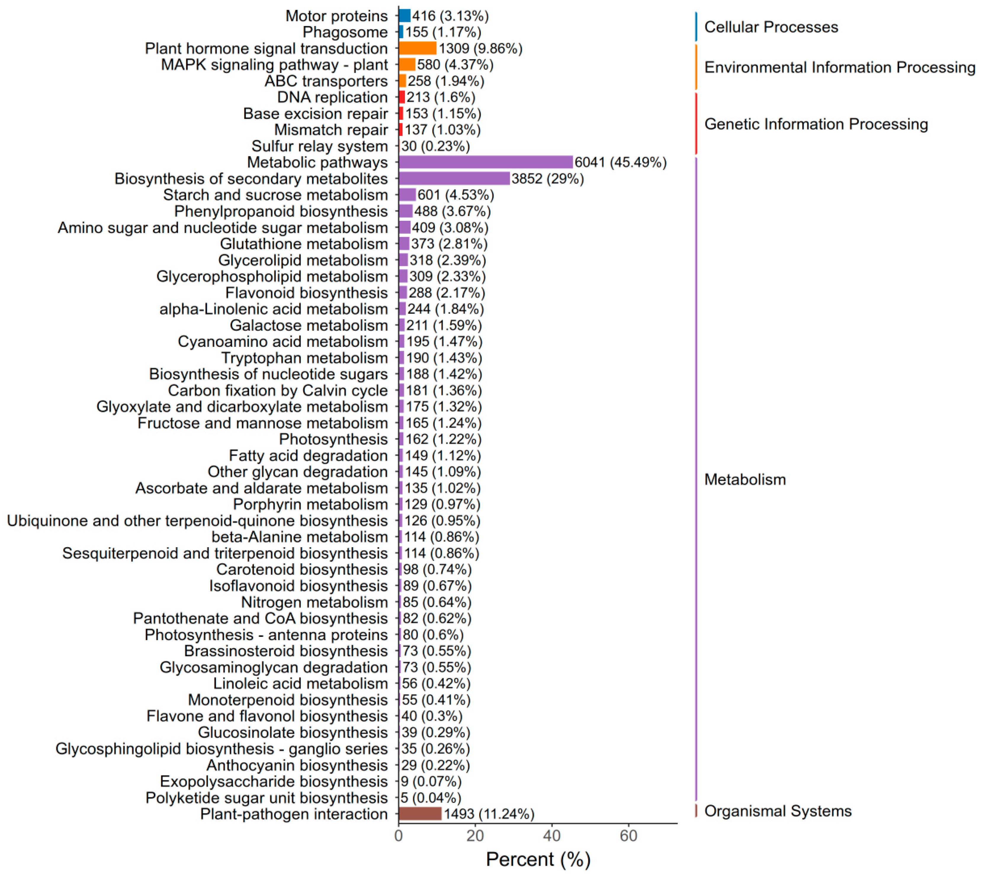 3.1.5. KEGG Analysis of Differentially Expressed Genes