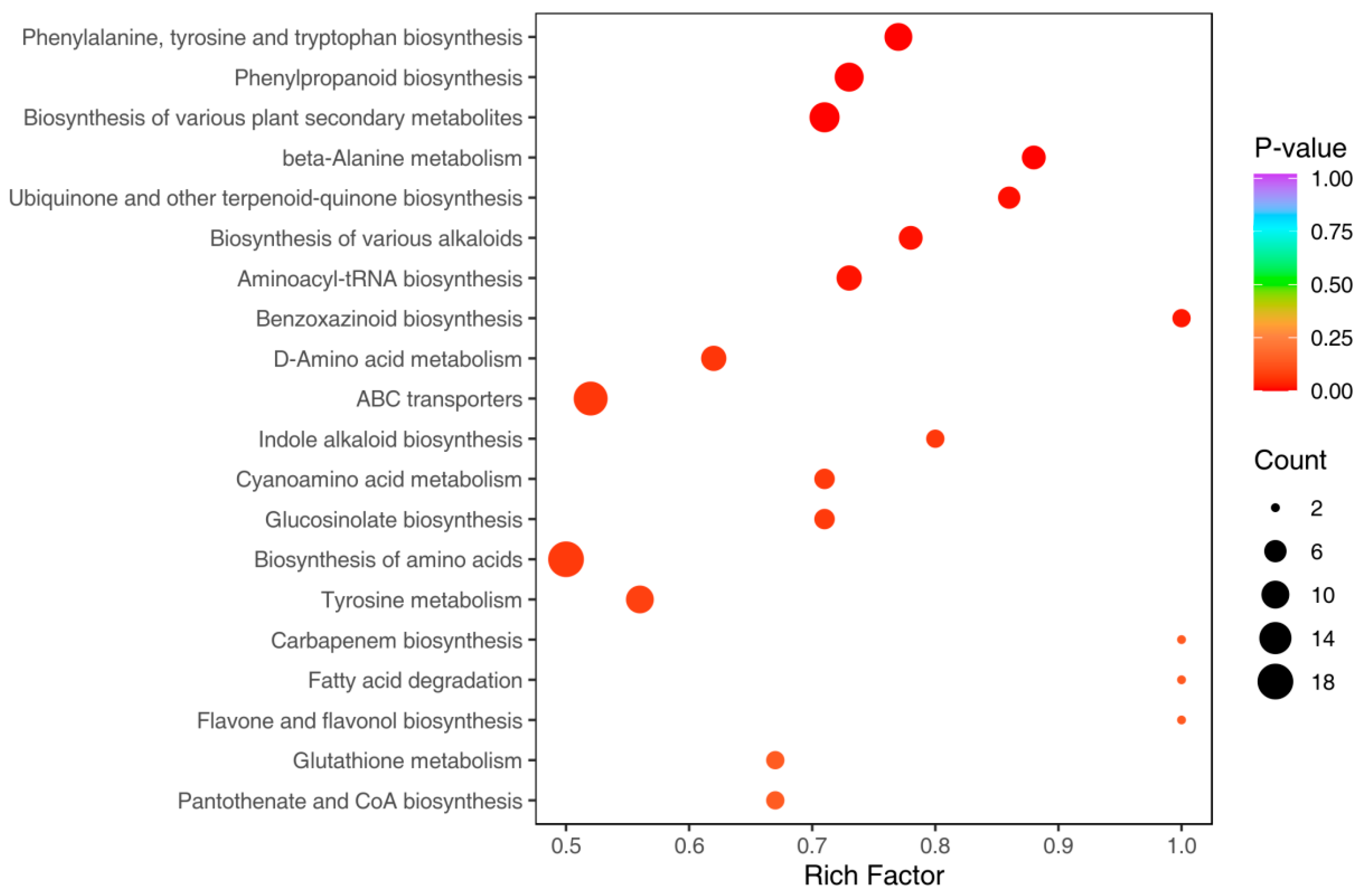 3.2.3. KEGG Pathway Enrichment Analysis of Differential Metabolites