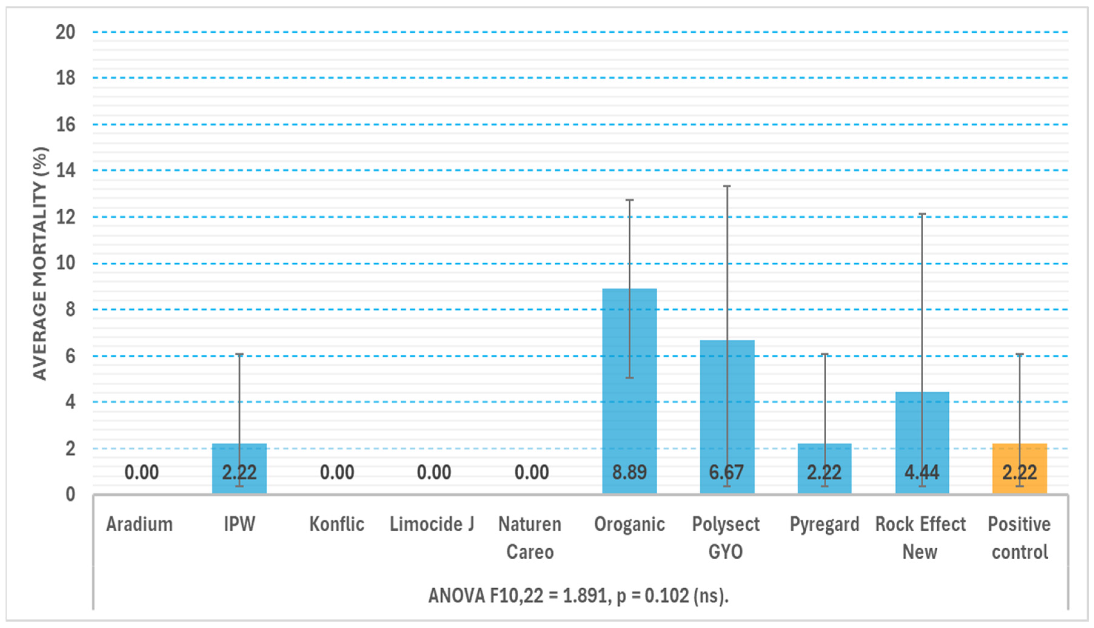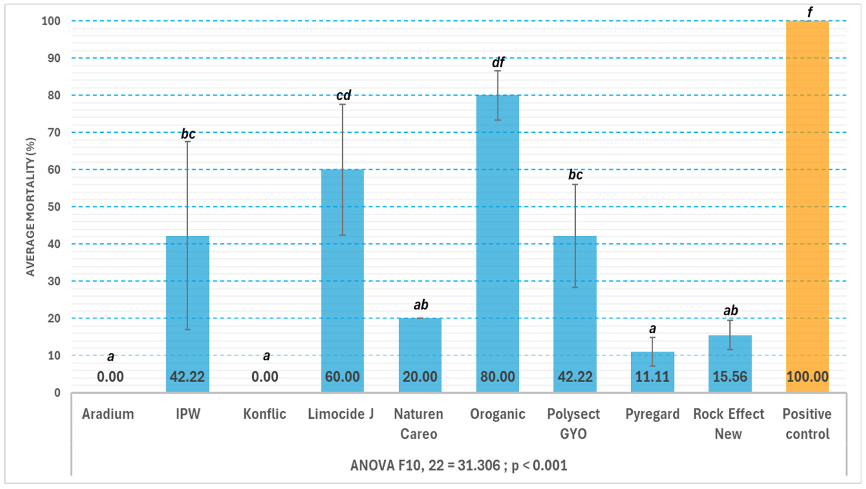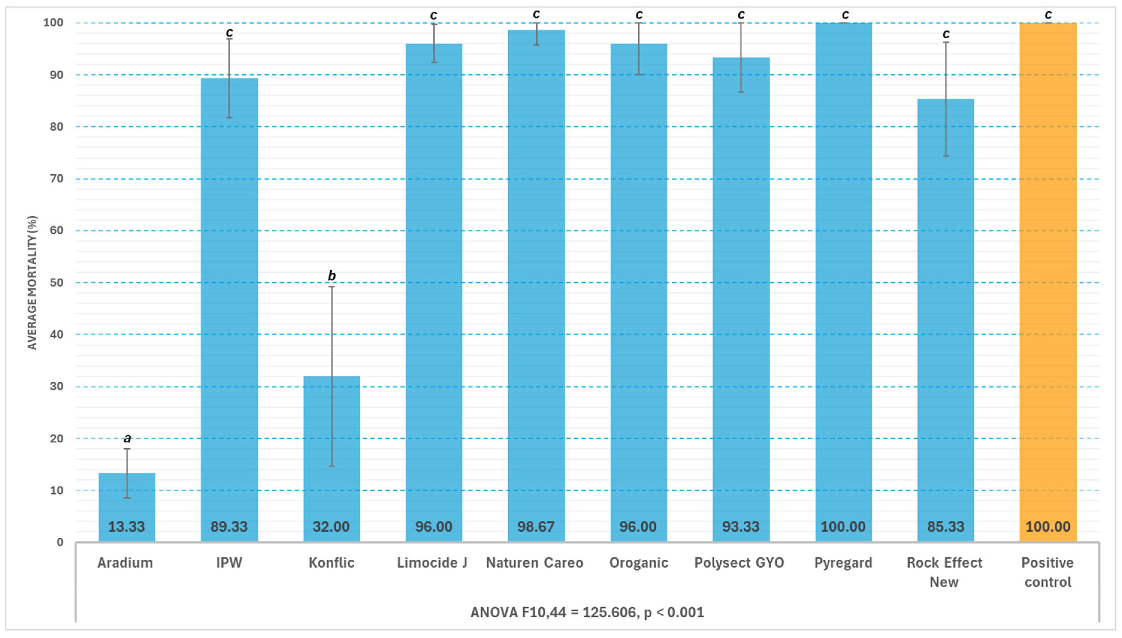 - Abbott, W.S. A Method of Computing the Effectiveness of an Insecticide. J. Econ. Entomol. 1925, 18, 265–267. [Google Scholar] [CrossRef]