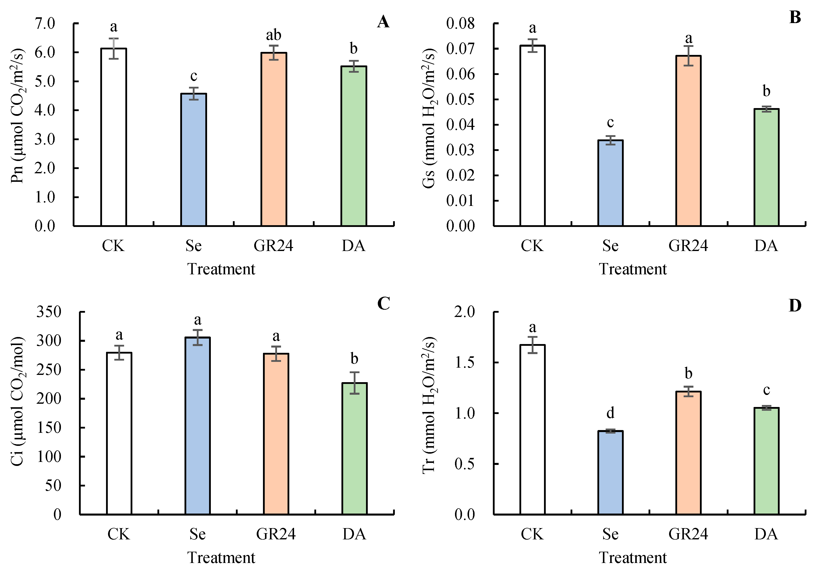 | Parameter | PH | RL | RB | SB | Cha | Chb | Car | Pn | Gs | Ci | Tr | POD | SOD | CAT | SP | Pro | SS | RSe | SSe |