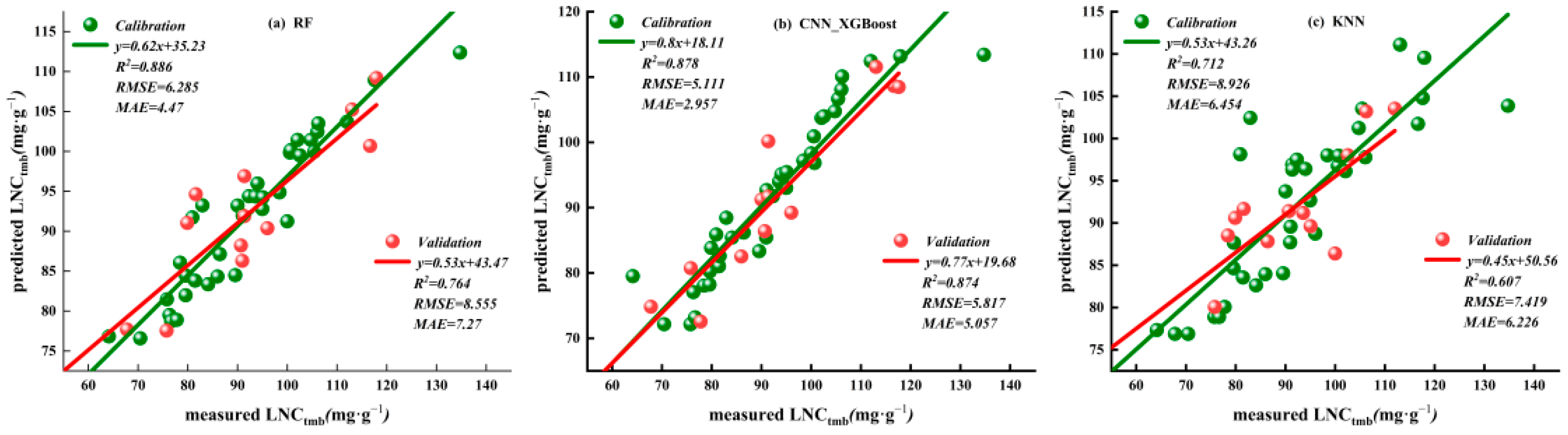 3.3. Establishment and Evaluation of LNC Estimation Models