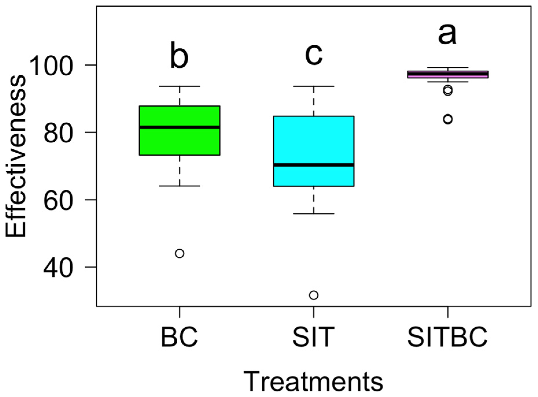 - Piepho, H.P.; Malik, W.A.; Bischoff, R.; El-Hasan, A.; Scheer, C.; Sedlmeier, J.E.; Gerhards, R.; Petschenka, G.; Voegele, R.T. Evaluación de la eficacia en la protección de cultivos: Un tutorial sobre el uso de la fórmula de Abbott. J. Plant Dis. Prot. 2024, 131, 2139–2160. [Google Scholar] [CrossRef]