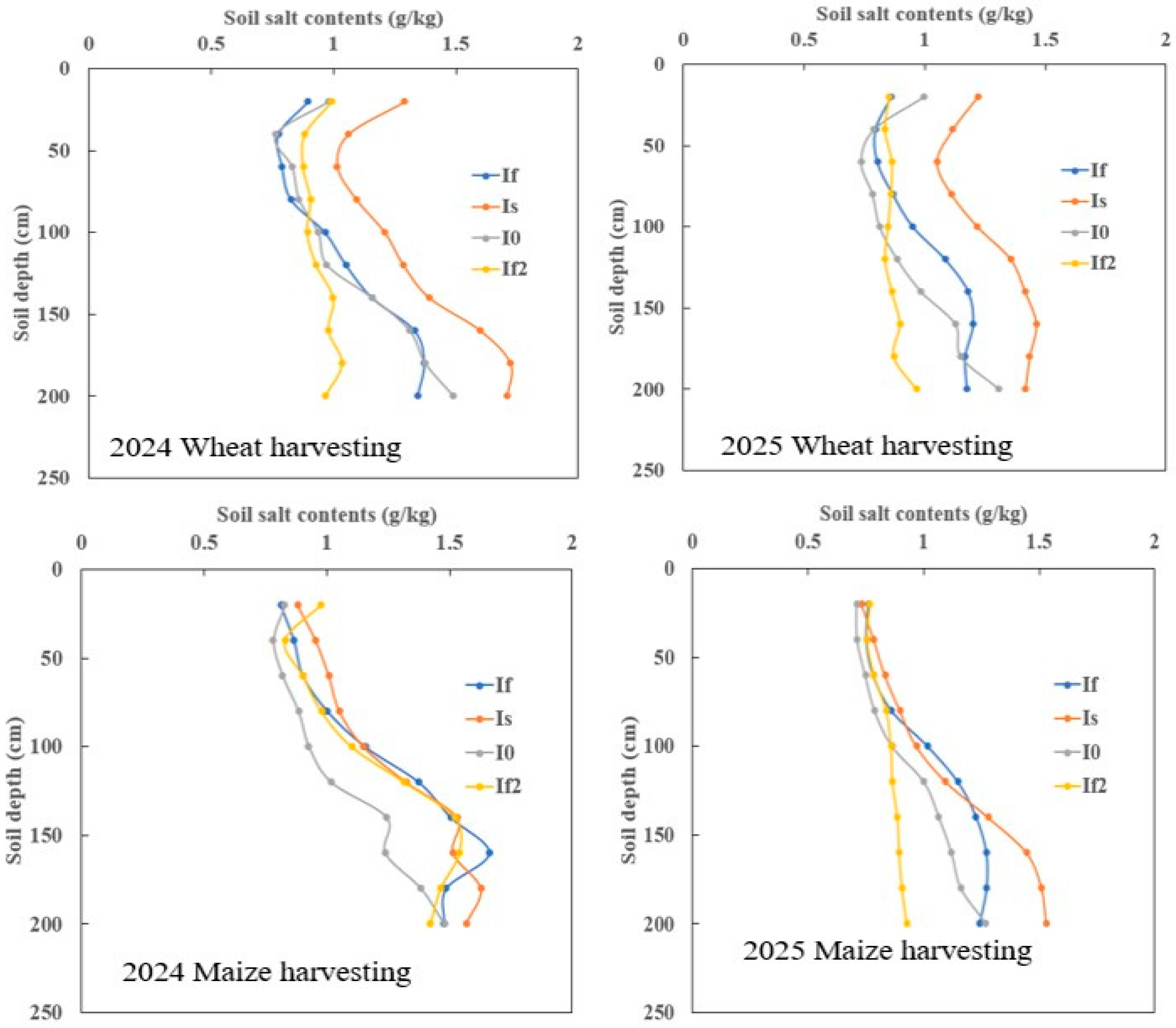 | Is + If: Saline irrigation (70 mm) at jointing stage followed by freshwater irrigation at anthesis | ||