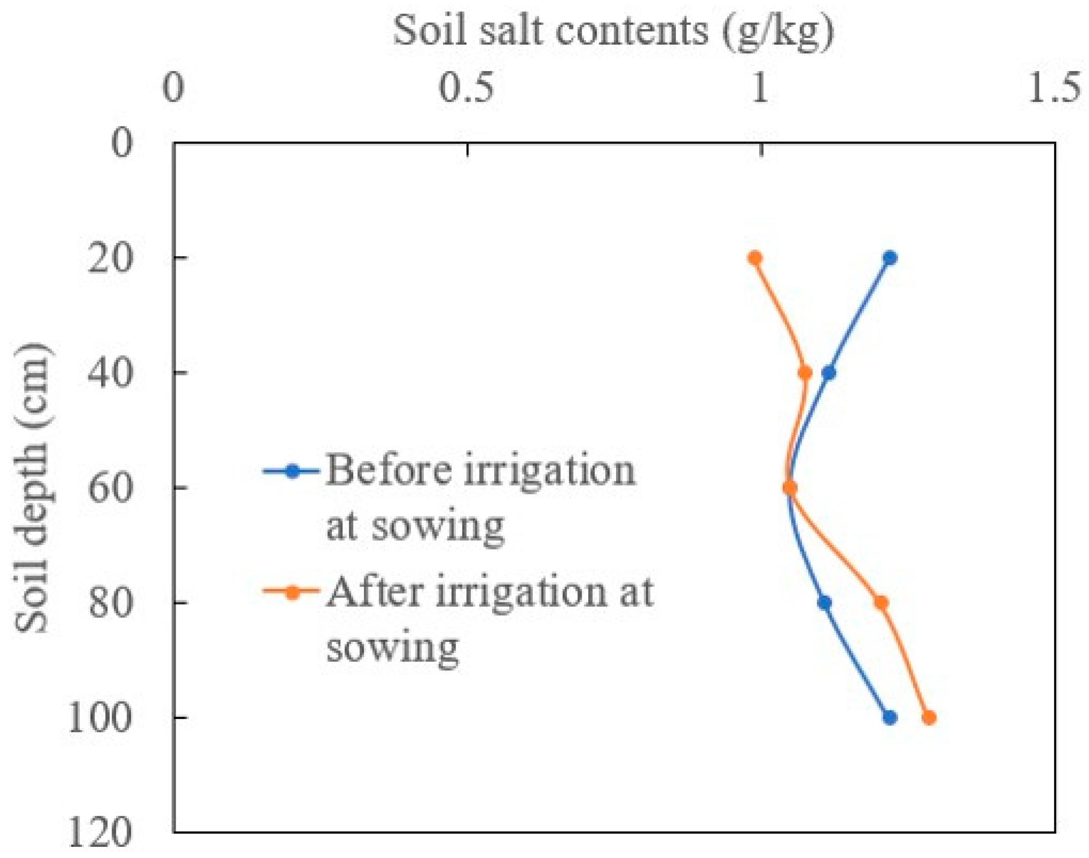 - Jiang, J.; Zhai, D.; Zhang, C.; Ma, J. Influence of Saline Water Irrigation on Root Distribution, Wheat Yield, and Soil Salinity. J. Irrig. Drain. Eng. 2021, 147, 04021005. [Google Scholar] [CrossRef]
