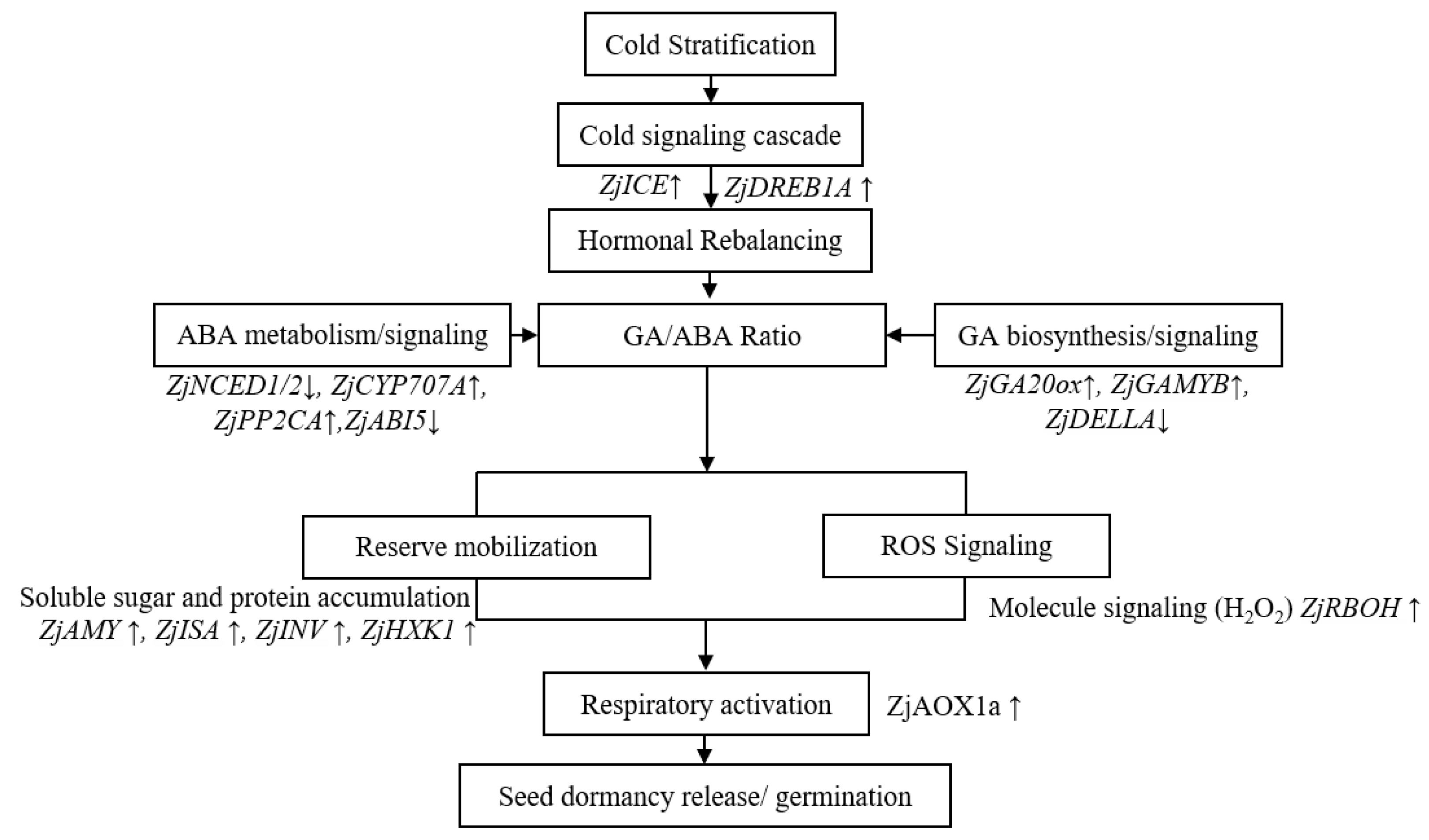 ZjICE1 cold-response signal that transitions into a robust ABA-to-GA transcriptional shift, effectively resetting the molecular “gate” from dormancy maintenance to germination execution.